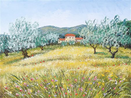 SOFFICI PIERPAOLO Senza titolo. Olio su cartone telato. Cm 65,00 x 50,00. Firma in basso a destra.