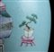 Decoro con figure su fondo turchese inciso con arabeschi, marchio apocrifo di Yongzheng al centro della base.