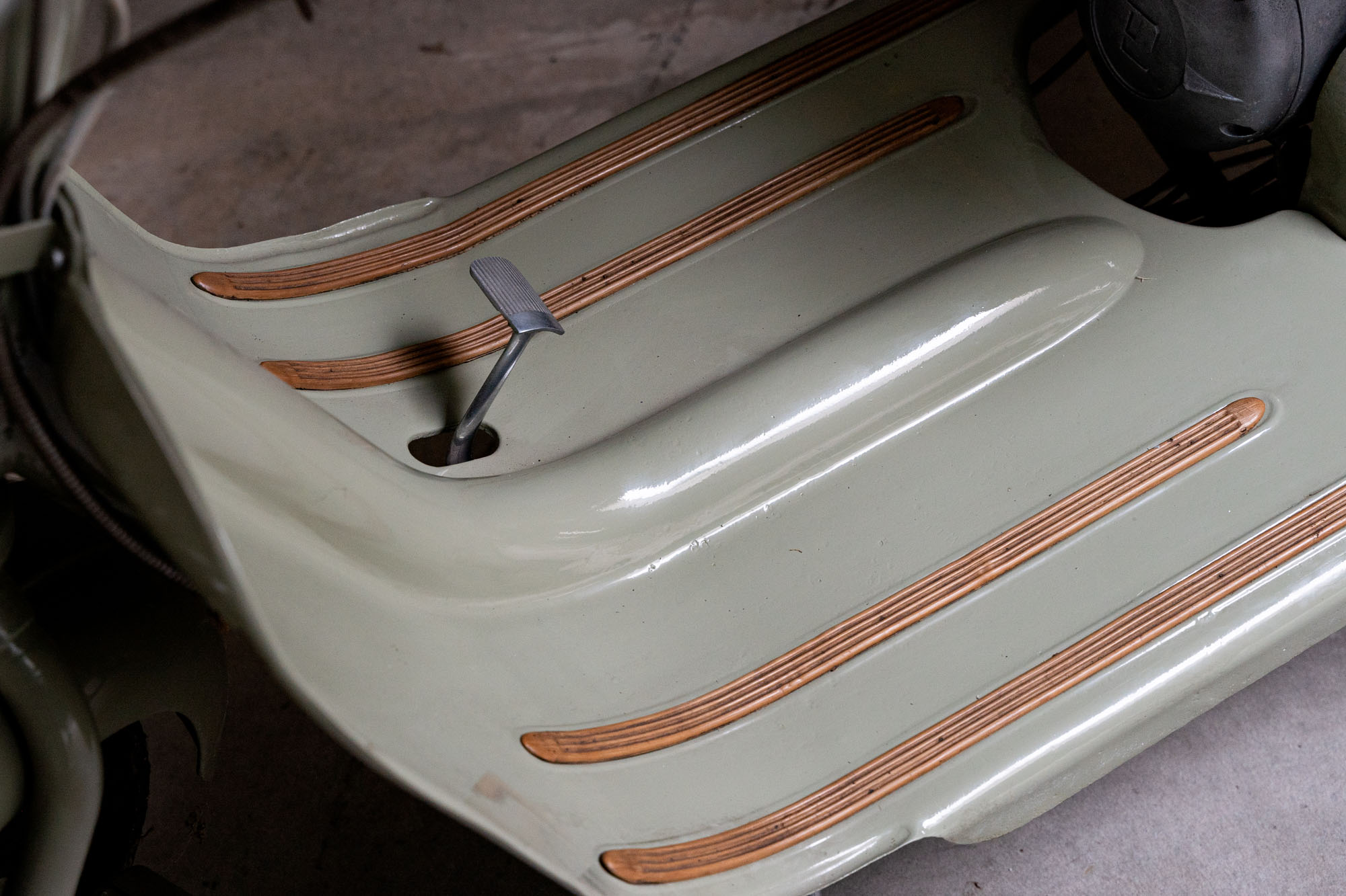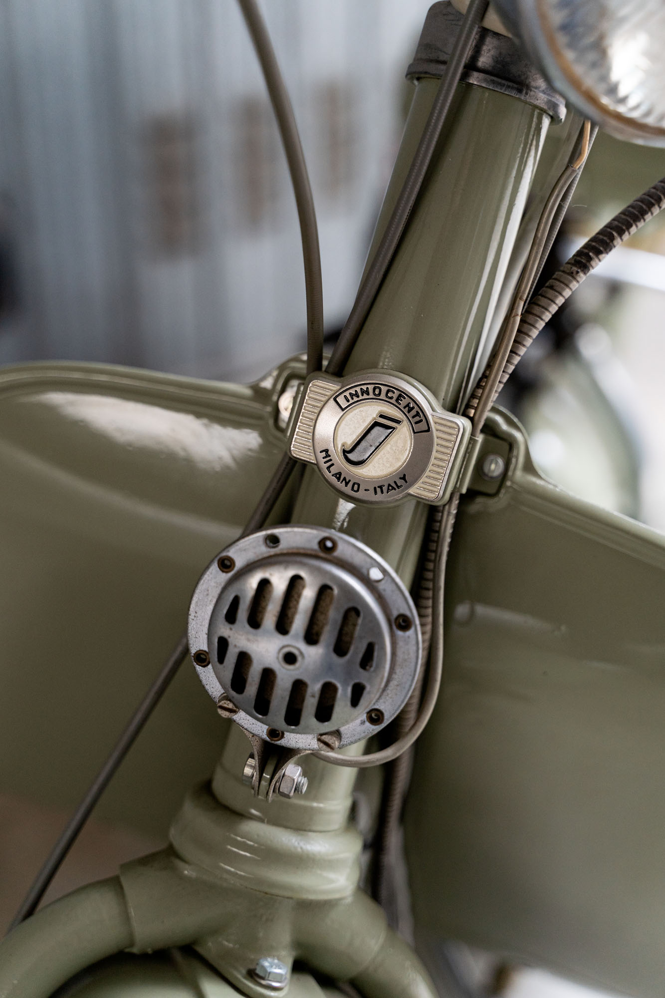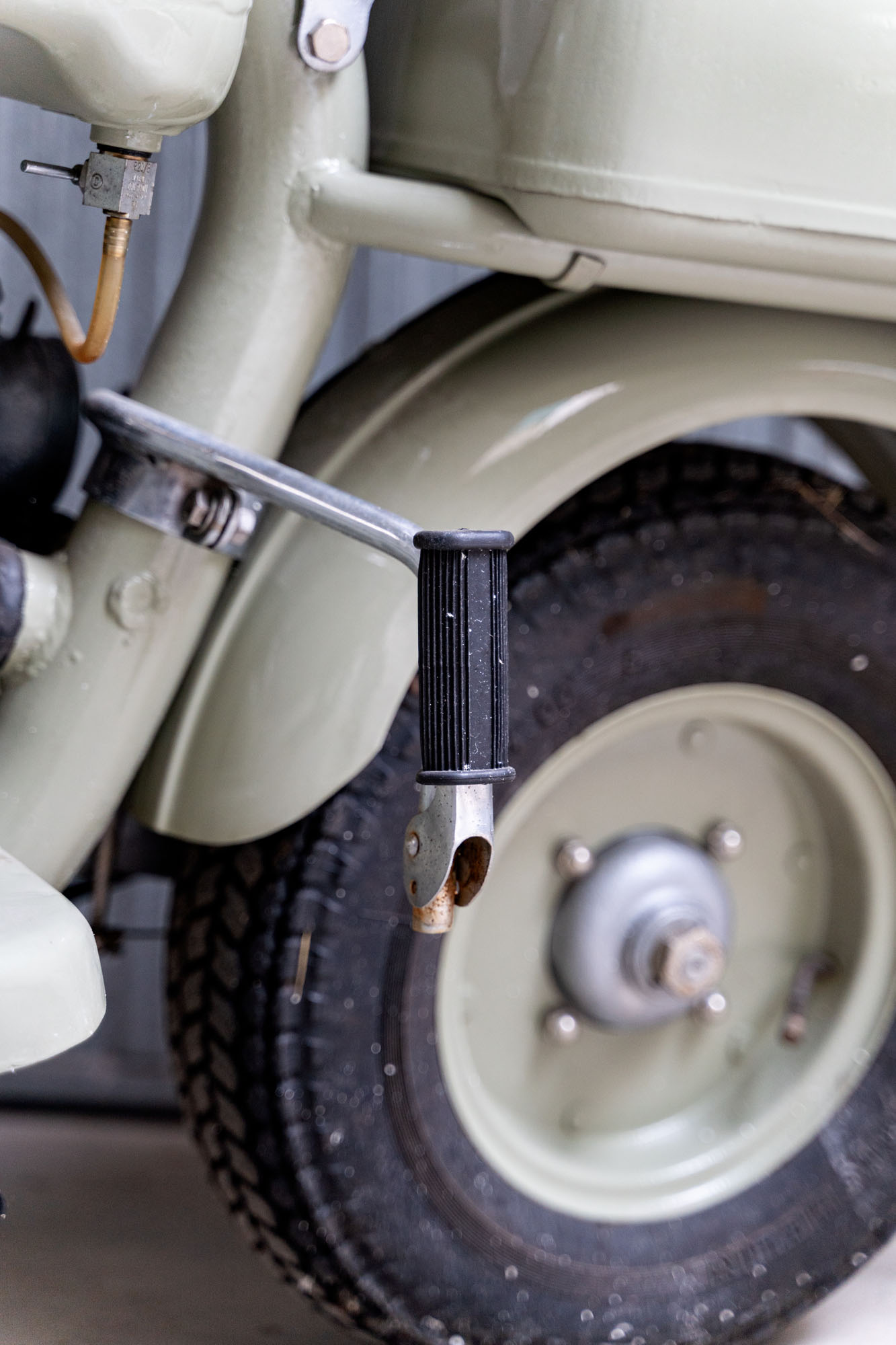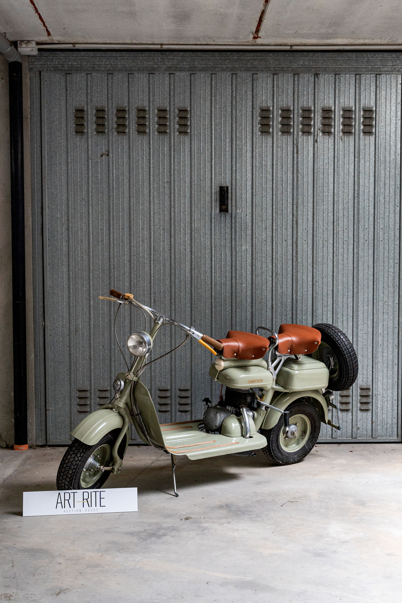 LAMBRETTA125 E1953Telaio num. 15427- Con accensione a strappo e cavalletto laterale- Restauro totale- Ottime condizioni generali- Con pneumatico di scorta originale Pirelli- Nel suo verde oliva 8021