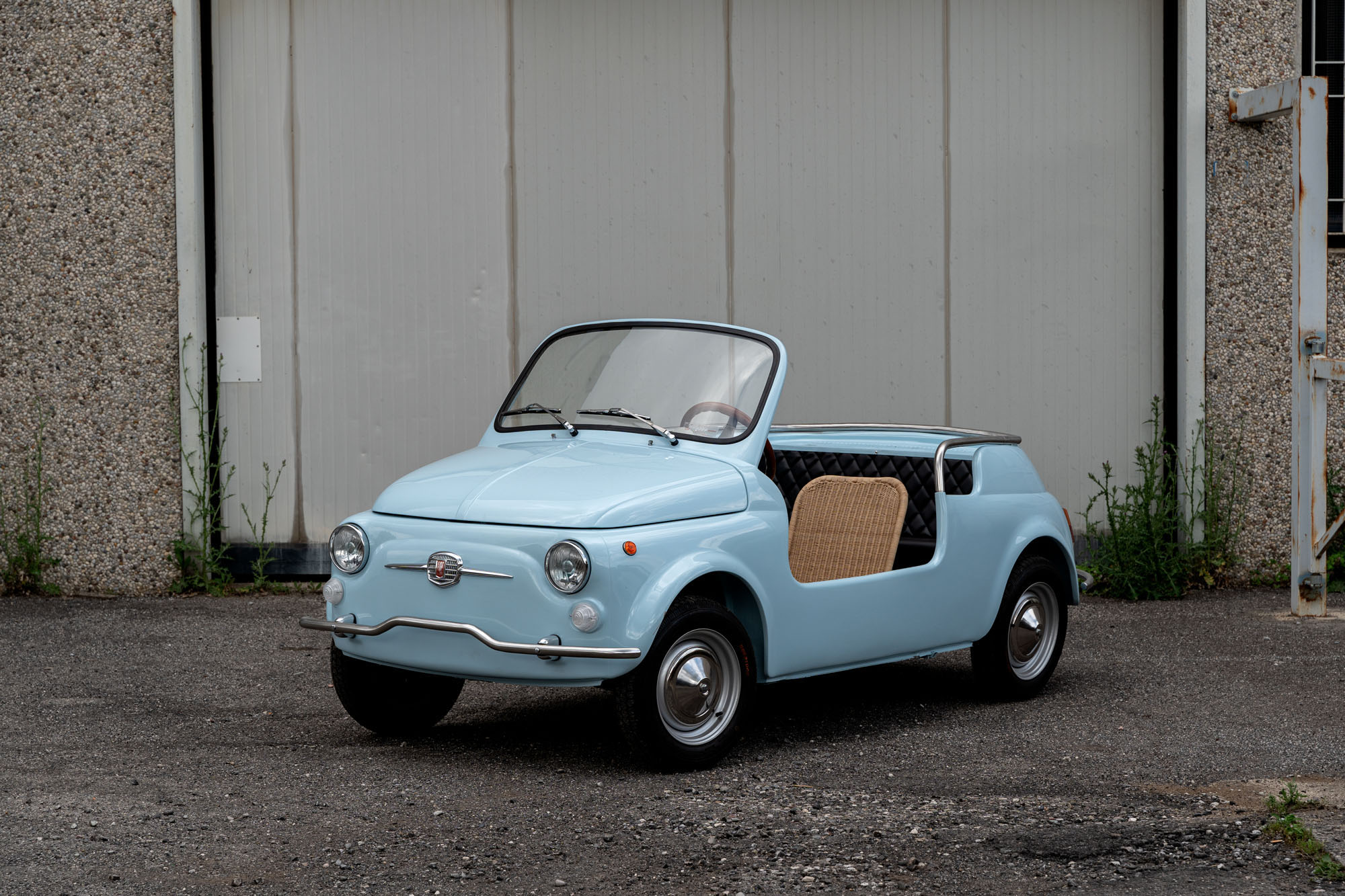 FIAT500 tipo Jolly1971Telaio num. 5047100- Primo proprietario: una signora del Lago di Garda che utilizzava l'auto per andare al lago- Favolosamente restaurata in ogni dettaglio- Restaurata da Legend Car, uno dei migliori restauratori di Fiat 500 - Color azzurro acquamarina - Parabrezza in tubolare che facilita la discesa e la salita dall'auto - Pronta per l'estate Documenti e certificati:Immatricolazione italiana