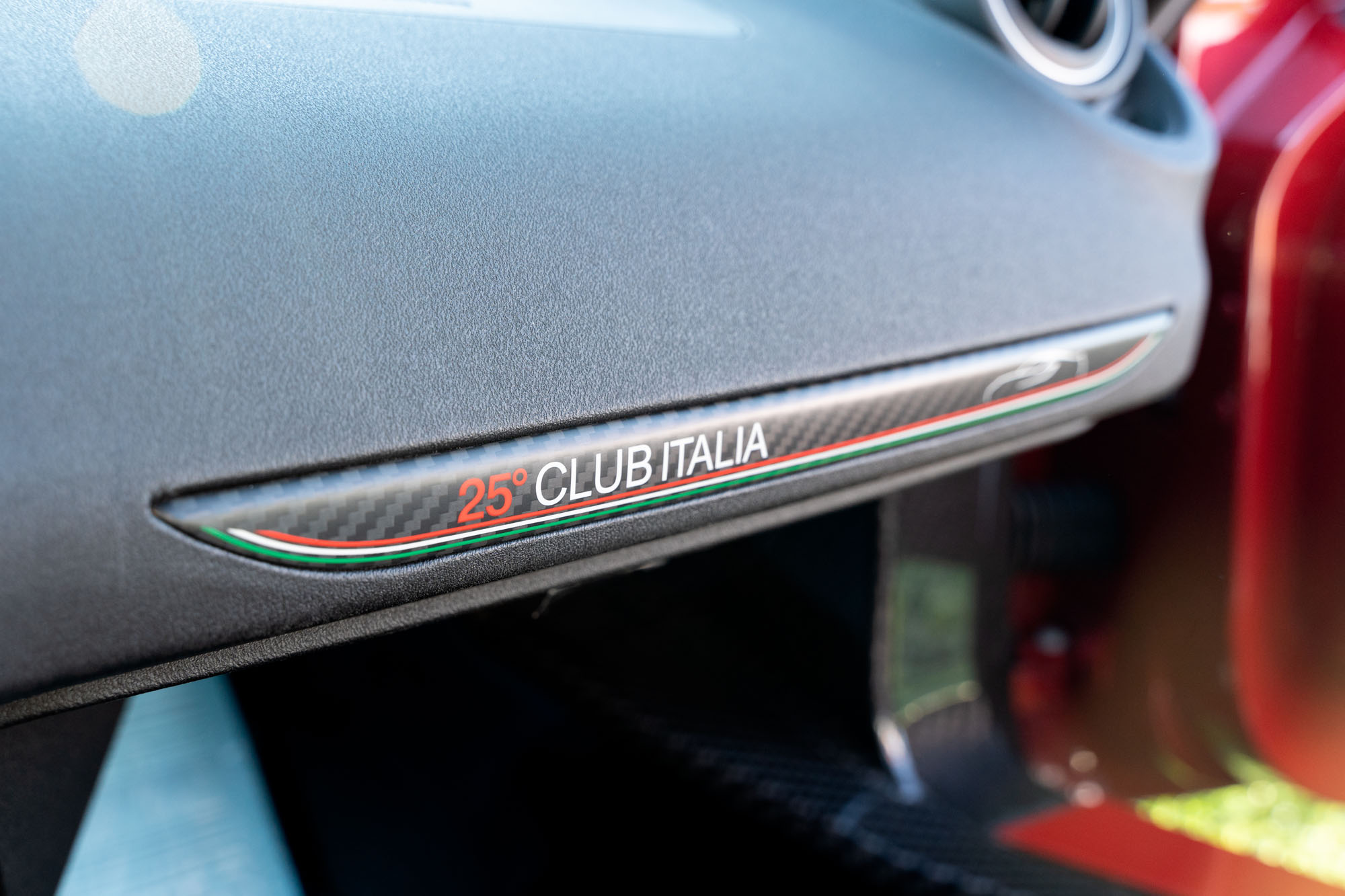 ALFA ROMEO4C Club Italia2015Telaio num. * Z A R 9 6 0 0 0 0 0N170373*- Rarità ineguagliabile, una delle soli 15 unità prodotte- Solamente 10.000 km- La versione più rara della prestigiosa 4C- La numero tre sui soli 15 esemplari realizzati- Cella interna con carbonio a vista - Equipaggiata con ogni optional disponibile nella versione Club Italia- Monoscocca in fibra di carbonioDocumenti e certificati:Immatricolazione italiana Lettera del presidente Club Italia Ordine dell'auto in bianco Ricevuta di consegna in fabbrica Foto della consegnaPresentata il 7 novembre 2015 a Balocco presso il Centro Sperimentale di FCA, le 17Alfa Romeo 4C Club Italia sono state prodotte in edizione limitata ed esclusiva per i Soci del Club Italia. La 4C Club Italia prosegue la storia delle vetture personalizzate per il prestigioso club di appassionati di automobili, che ha avuto inizio con la Fiat Tipo 16 valvole presentata nel 1988 per proseguire con la rara versione della Delta Integrale Club Italia del 1992.Numerate, personalizzate e riservate in esclusiva ai Soci (16), oggi queste vetture sono diventate oggetti da collezione. Tra le personalizzazioni si annovera anche una moto, la Ducati Monster 900 in 34 esemplari, e tre modelli di bicicletta della Bianchi: la MTB Club Italia, l'Alluminio Sloping Bianchi Club Italia e la Spillo Bianchi Club Italia.La 4C Club Italia è stata ordinata dal socio Silvano Cima, a cui è stata riservata una delle prime dieci unità, e consegnata personalmente sulla pista di Balocco insieme agli altri esemplari. L'auto è dotata di tutti gli optional previsti nella versione Club Italia, tra cui il potente scarico Akrapovic che regala al 4 cilindri un suono meraviglioso. L'auto ha soli 10.000 chilometri, percorsi principalmente durante gli eventi del Club Italia, l'auto è corredata da foto della presentazione a Balocco, la cartella stampa, la lettera del presidente del Club Italia e una copia dell'ordine in bianco, poiché era destinato al figlio di Cima.L'auto beneficia anche di un upgrade di elettronica e assetto, rivisto dal noto preparatore milanese Romeo Ferraris, il quale ha realizzato un intervento ad hoc per la 4C, rendendola perfetta in ogni situazione. L'assetto originale è presente e verrà venduto insieme alla macchina.La 4C Club Italia La versione limitata beneficia di alcune caratteristiche tecniche con ampio uso della fibra di carbonio, impiegata per lo spoiler posteriore, il tetto, gli specchietti retrovisori e le appendici, tutte realizzate in questo prezioso materiale. La carrozzeria è dipinta nel colore speciale rosso Alfa Romeo corse vintage, mentre negli interni una targhetta sul brancardo del lato guida indica il numero dell'esemplare.A ornare il laterale della carrozzeria, due scudetti del Club Italia, una striscia tricolore sui proiettori anteriori e le scritte sulle fiancate completano l'estetica distintiva di questa versione limitata.Il Club Italia E' un associazione sportivo culturale italiana nata su iniziativa di alcuni appassionati cultori dell'automobilismo, il Club Italia ha come obiettivo sociale la promozione dell'immagine dell'automobile italiana attraverso ogni suo aspetto: culturale, tecnico, sportivo e sociale. Ritiene che l'automobile sia tra le massime espressioni della creatività e genialità italiane di questo secolo e come tale vada esaltata e preservata e i suoi valori tramandati. Grazie al contributo dei marchi di ieri e di oggi, dei grandi carrozzieri e delle personalità che hanno condotto l'Italia ai vertici mondiali della produzione e dello sport dell'automobile, con le sue iniziative il Club Italia dalla metà degli anni 80 è il punto di riferimento dell'amore per l'automobile in ogni sua espressione.