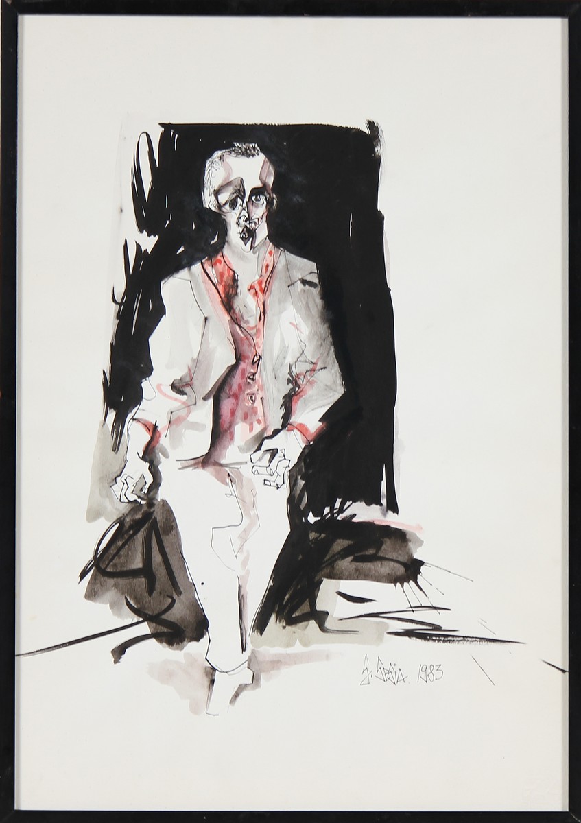 SESIA GIANNI (n. 1934) Senza titolo. 1983. Acquerello su carta. Cm 36,00 x 50,00. Firma e data in basso a destra. Cornice presente