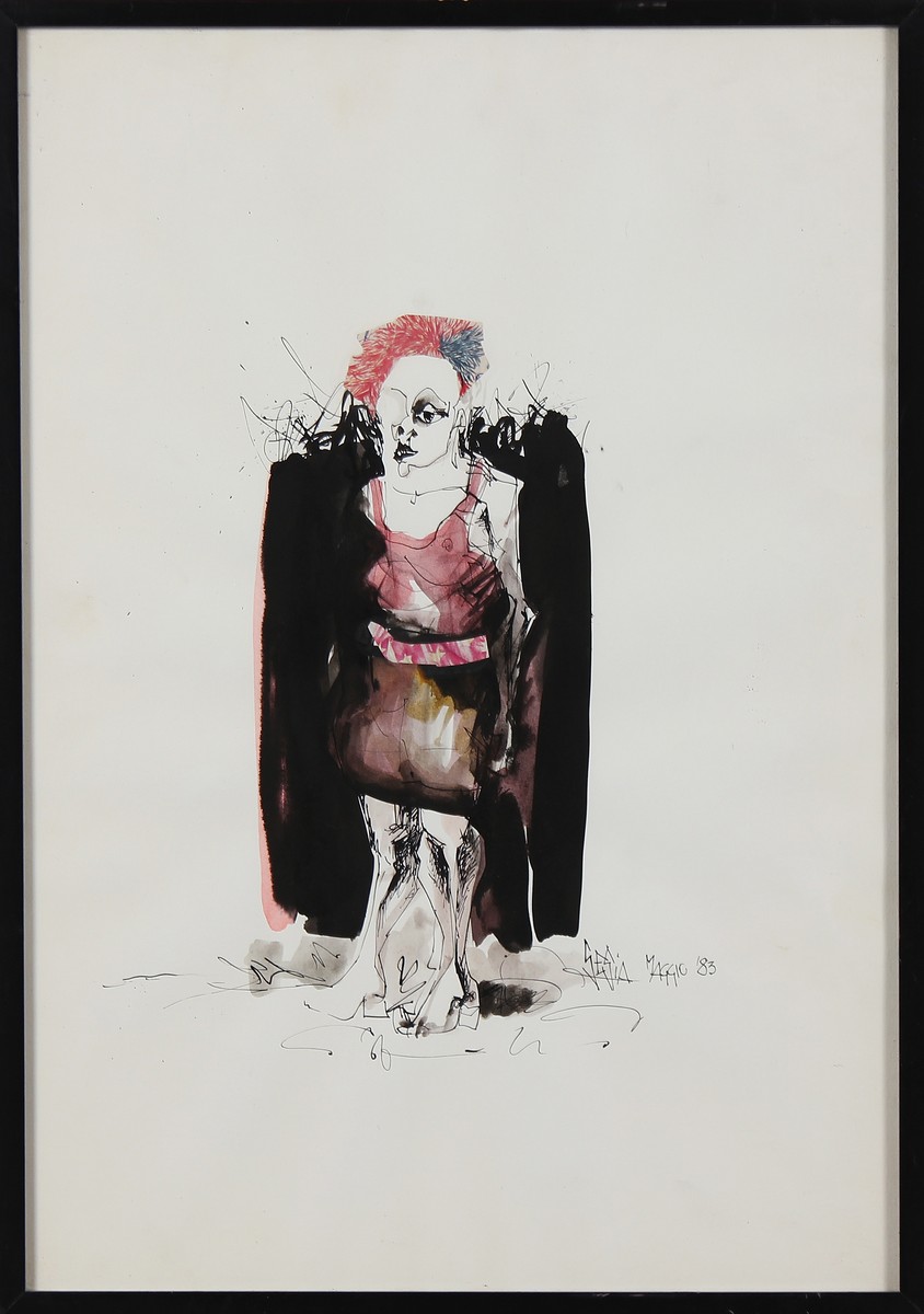 SESIA GIANNI (n. 1934) Senza titolo. 1983. Acquerello su carta. Cm 36,00 x 50,00. Firma in basso a destra. Cornice presente