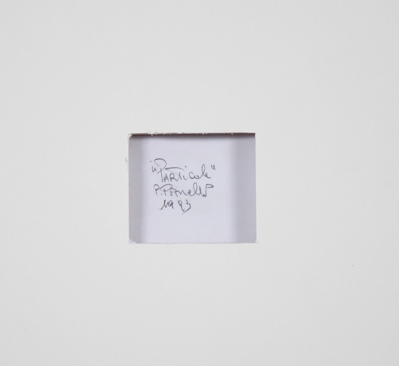 PINELLI PINO (n. 1938) Particole. 1993. Tecnica mista su carta. Cm 34,50 x 49,00. Firma in basso a sisnitra. Al retro titolo, firma e anno. Cornice presente