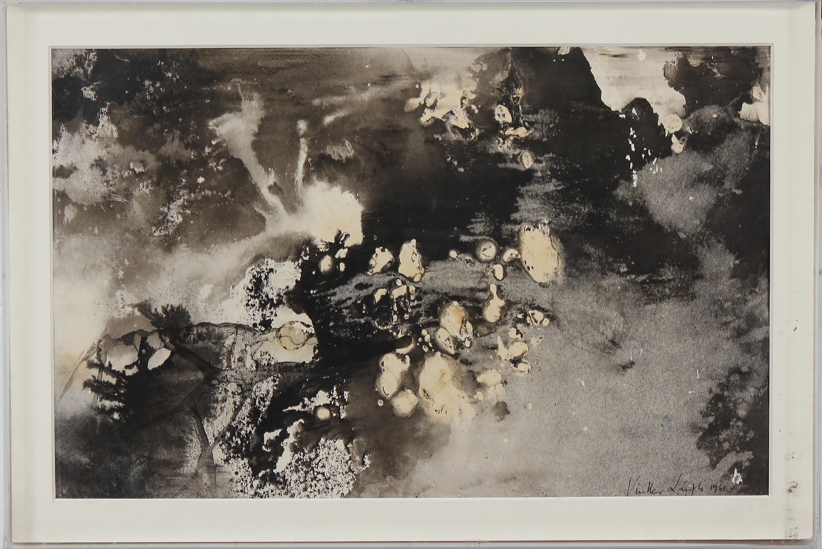 ANONIMO Senza titolo. 1961. Acquerello su carta. Cm 65,00 x 44,00 x 5,00. Firma e anno in basso a destra. Al retro timbro. Opera contenuta in teca di Plexiglass.