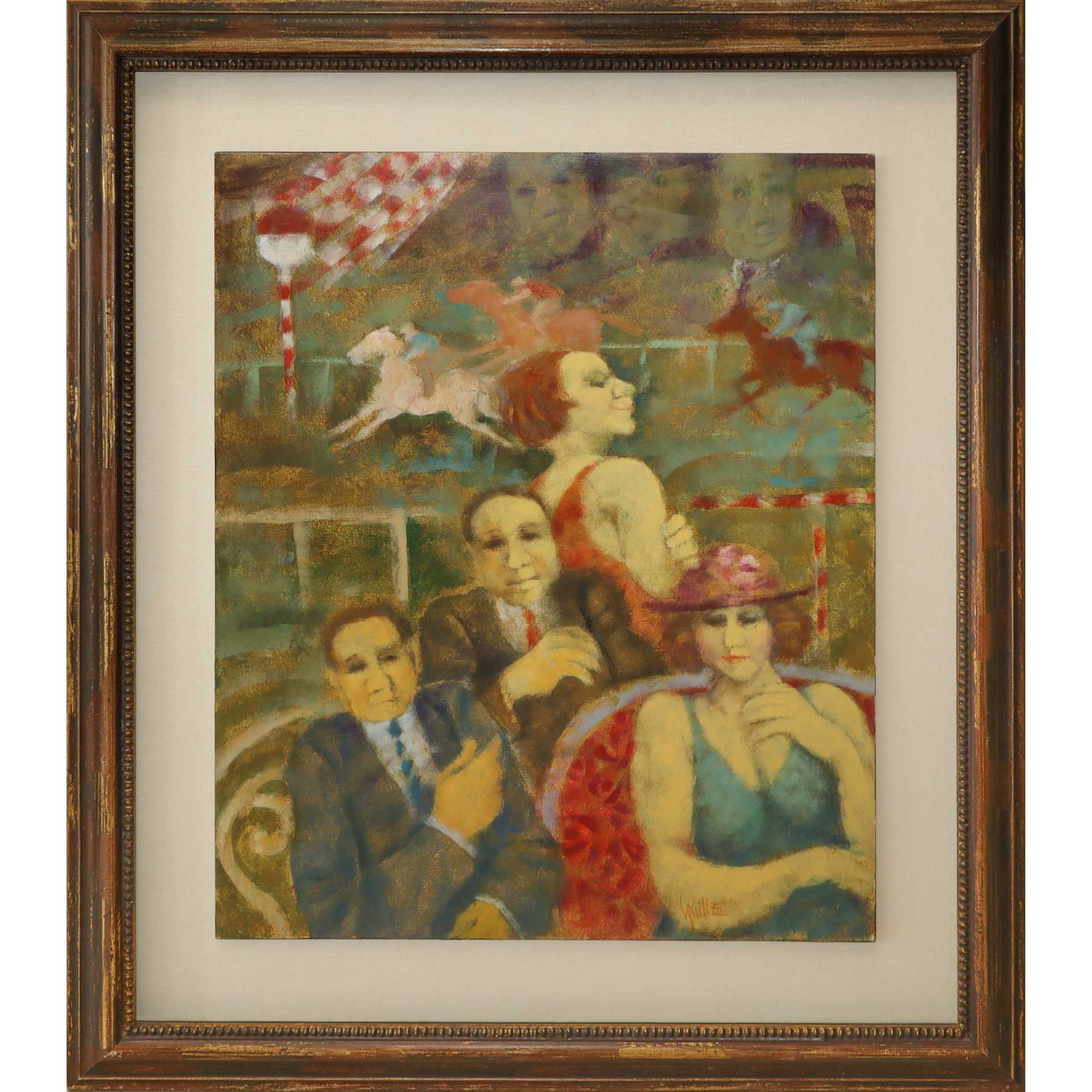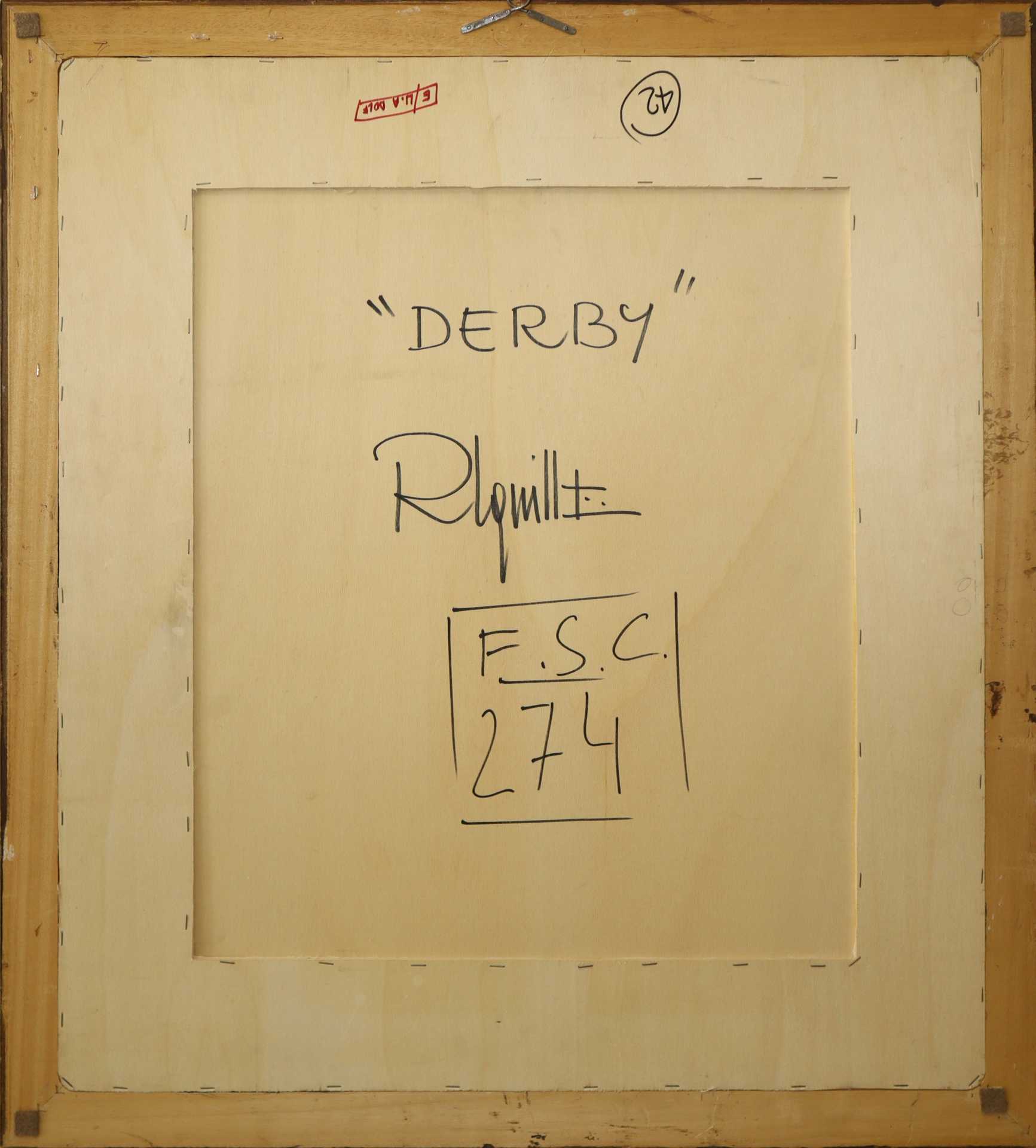 Remo Squillantini (Stia 1920-Firenze 1996) - Derby cm 70x60, in cornice cm 98x88 Olio su tavola Firmato in basso a destra. Firmato e titolato sul retro. Archivio Fotografico Generale delle Opere di Remo Squillantini, Numerato F.S.C. 274.