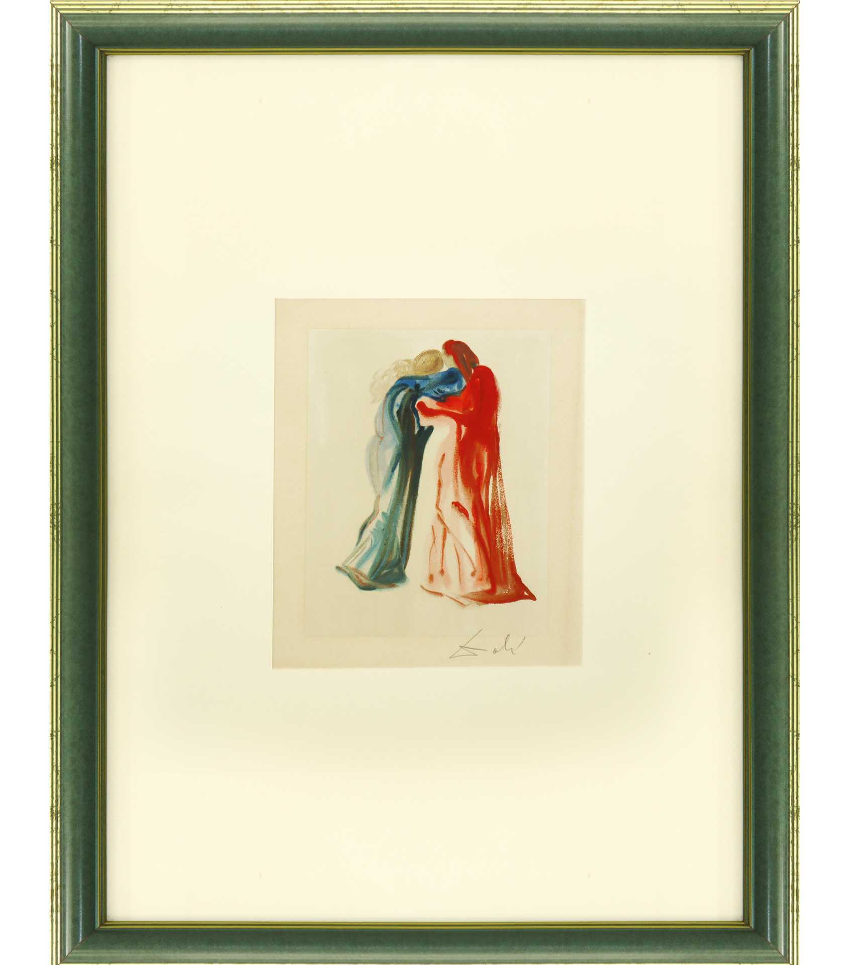 Salvador Dalì (Spanish 1904-1989) - Dante e Beatrice H cm 30x24 - in cornice H cm 78x58 litografia