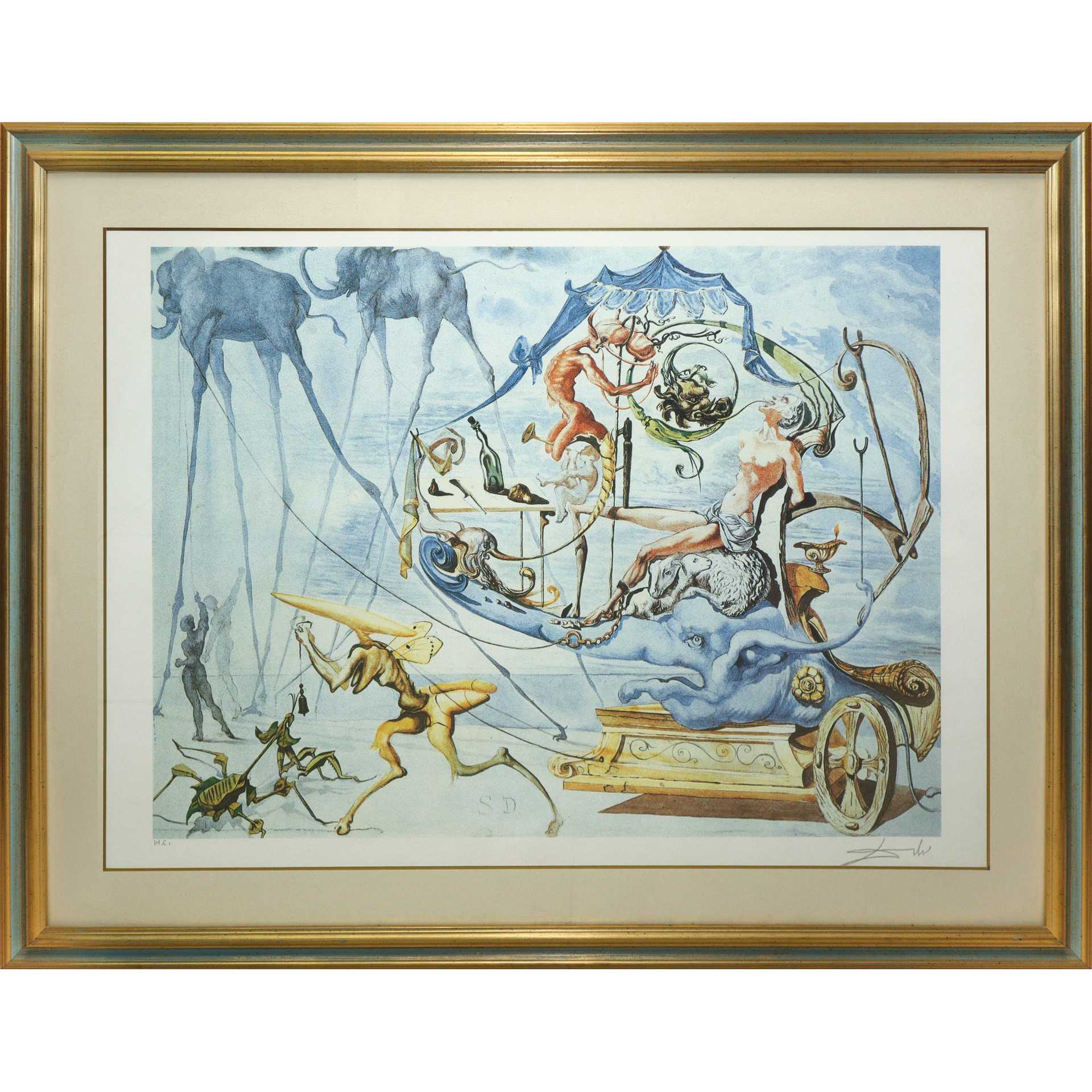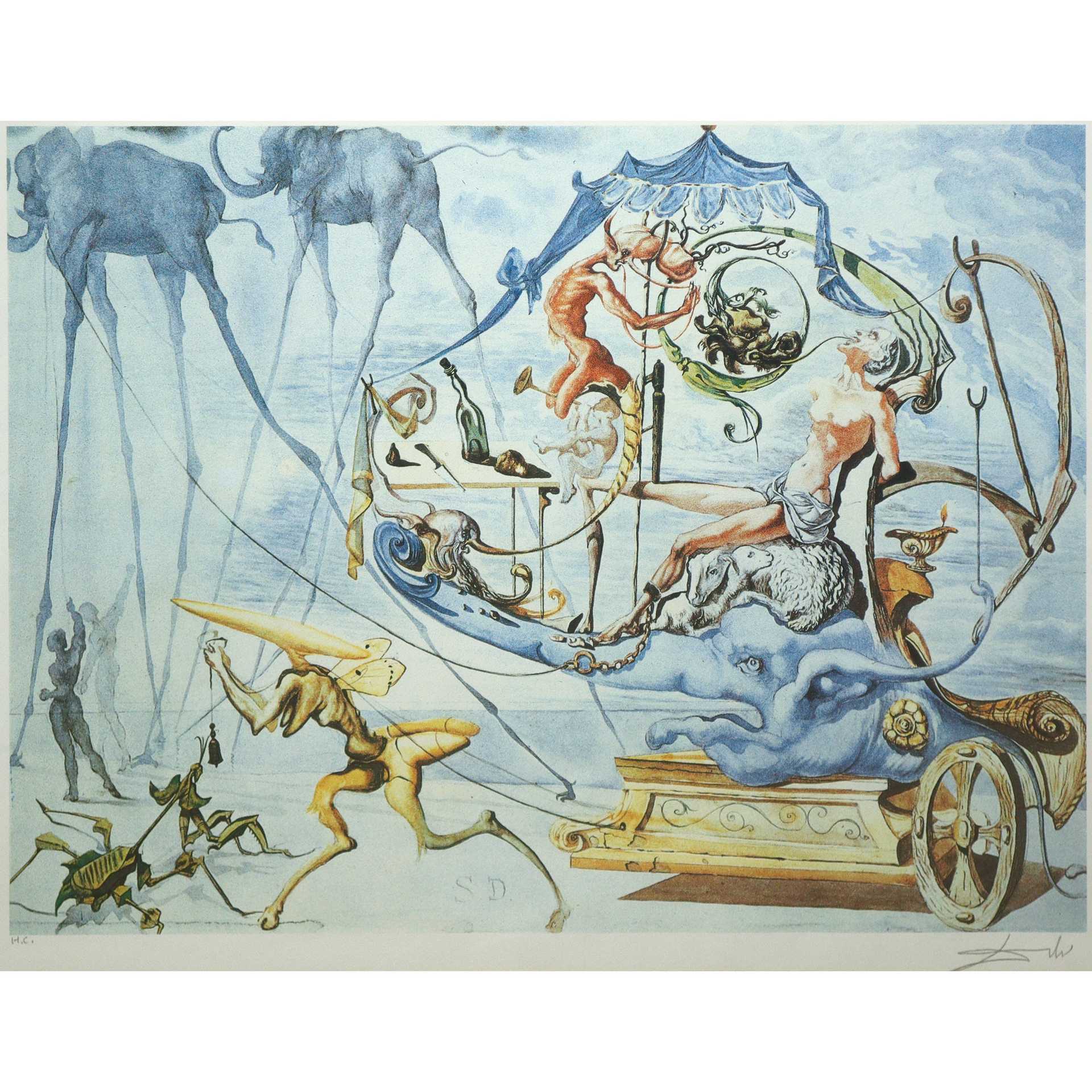 Salvador Dalì (Spanish 1904-1989) - Il Carro di Bacco H cm 58x78 - in cornice H cm 78x98 litografia H.C. (Hors Commerce) al fronte in basso a sinistra, firma al fronte in basso a destra.