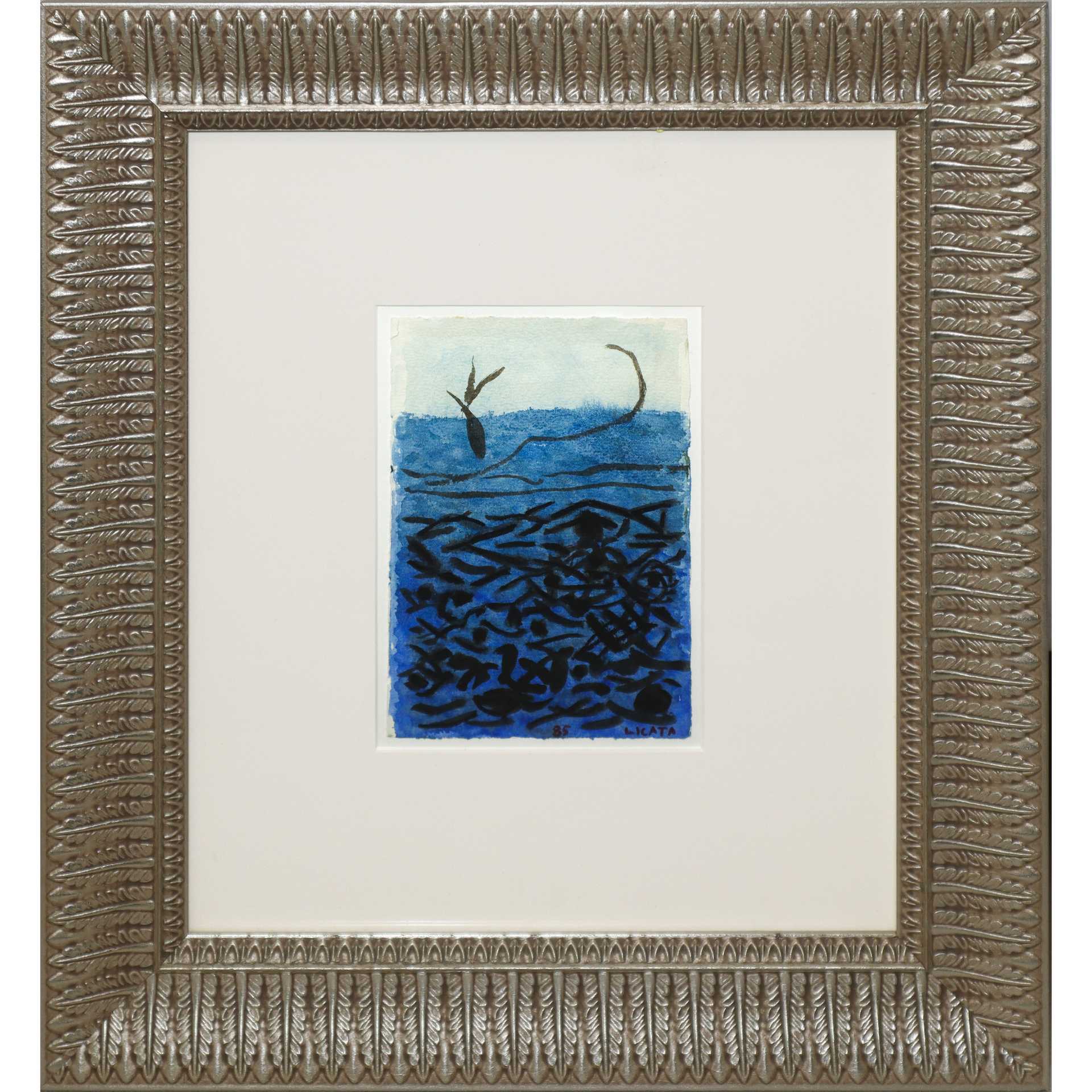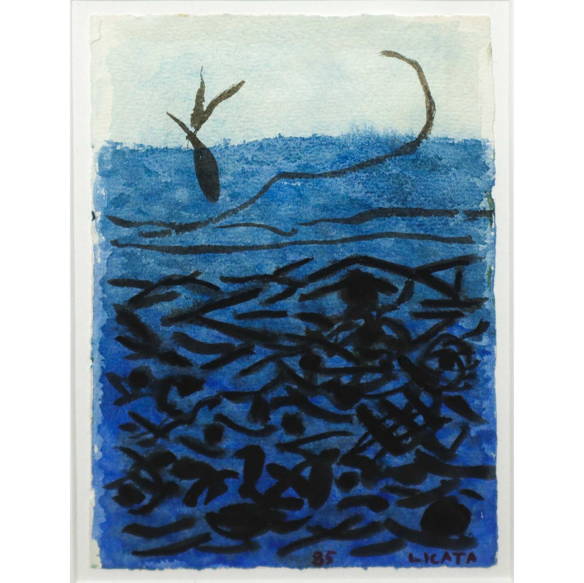 Riccardo Licata (Torino 1929-Venezia 2014) - Senza titolo H cm 16x10,5 - in cornice H cm 39x34 acquerello su carta Firma in basso a destra. data in basso al centro. Autentica dell'artista su fotografia