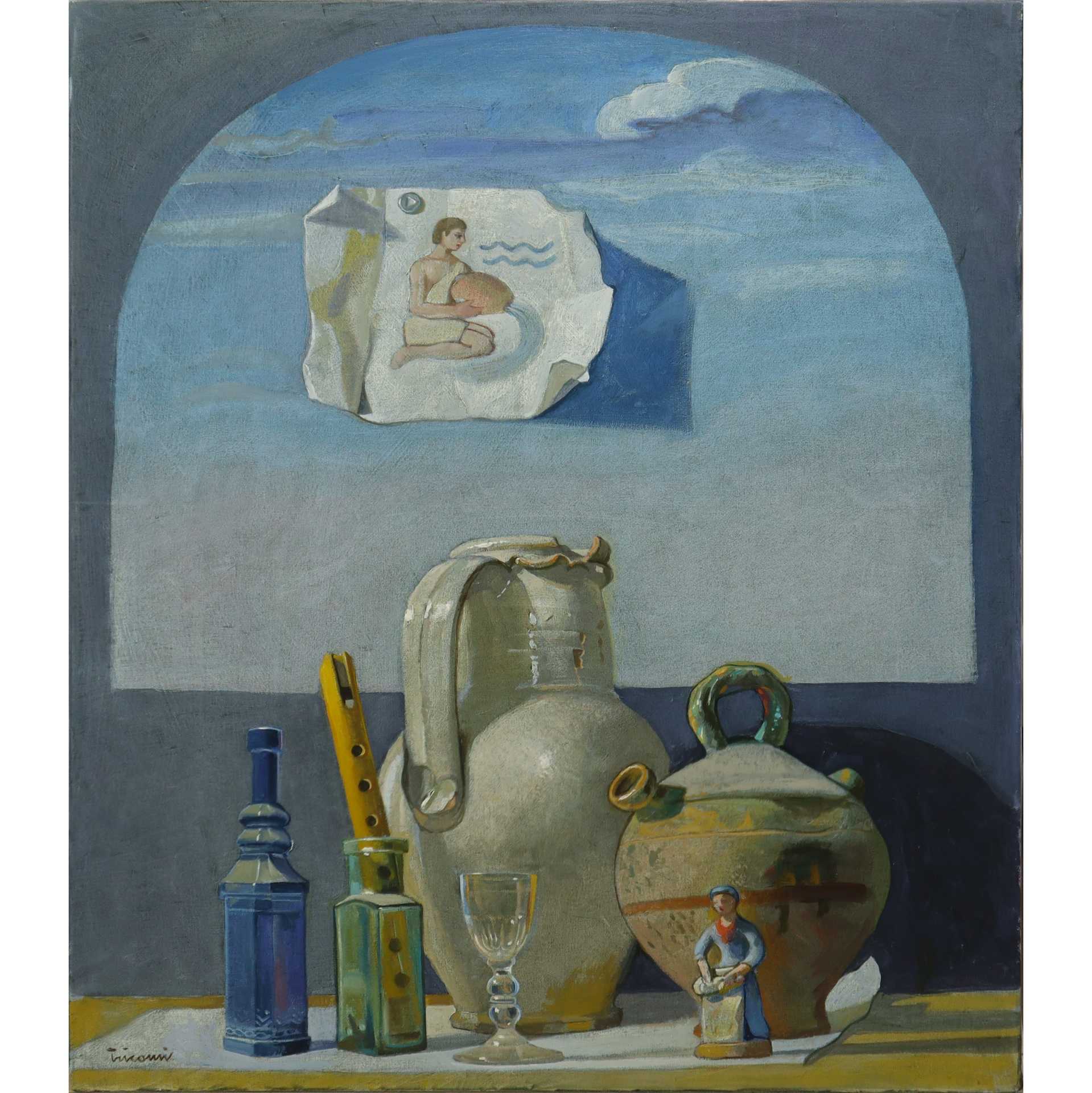 Saro Tricomi (Catania 1937-2021) - Acquario, 2010 H cm 50x70 Olio su tela Firmato in basso a sinistra. Al retro titolato, datato e firmato