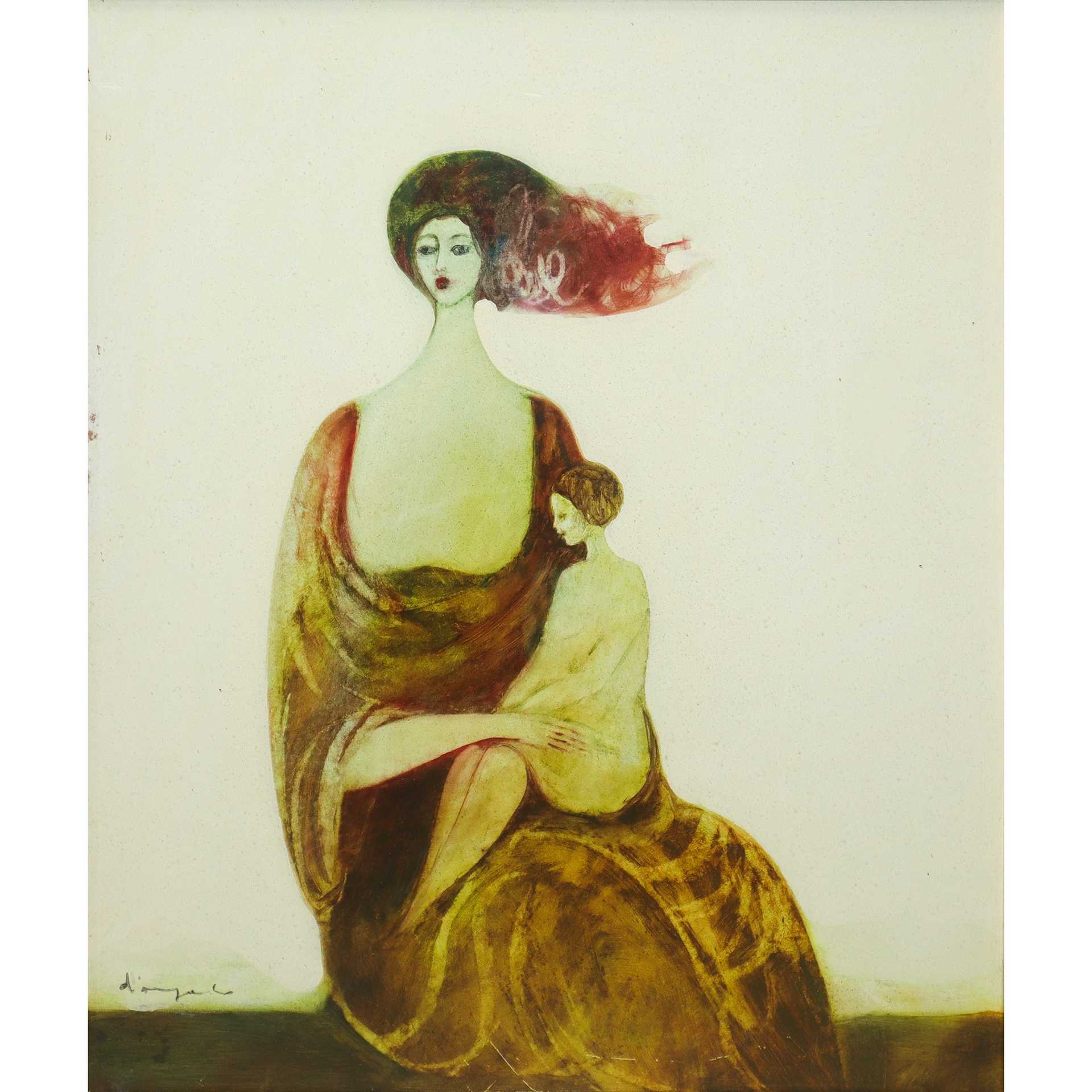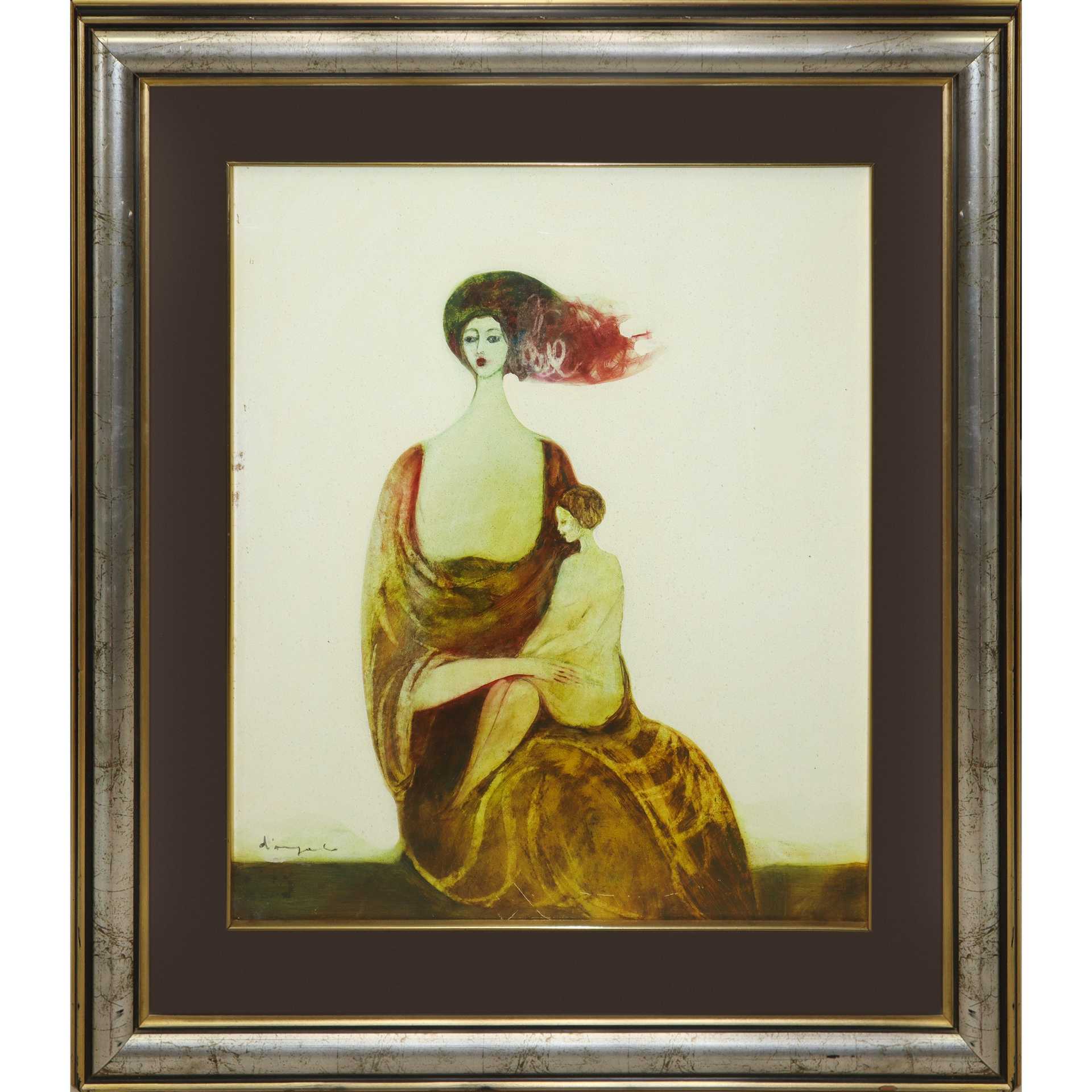 Cesare D'Angelo (Catania 1940-2006) - Maternità cm 51X45 con cornice 72,5X65 Olio su cartoncino Firmato in basso a sinistra.