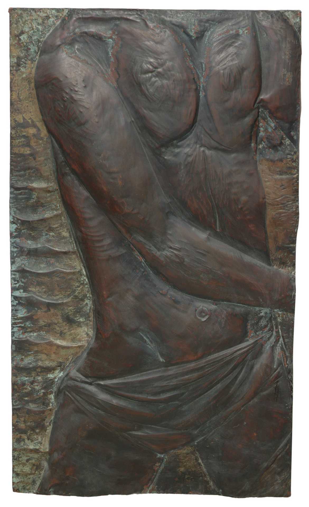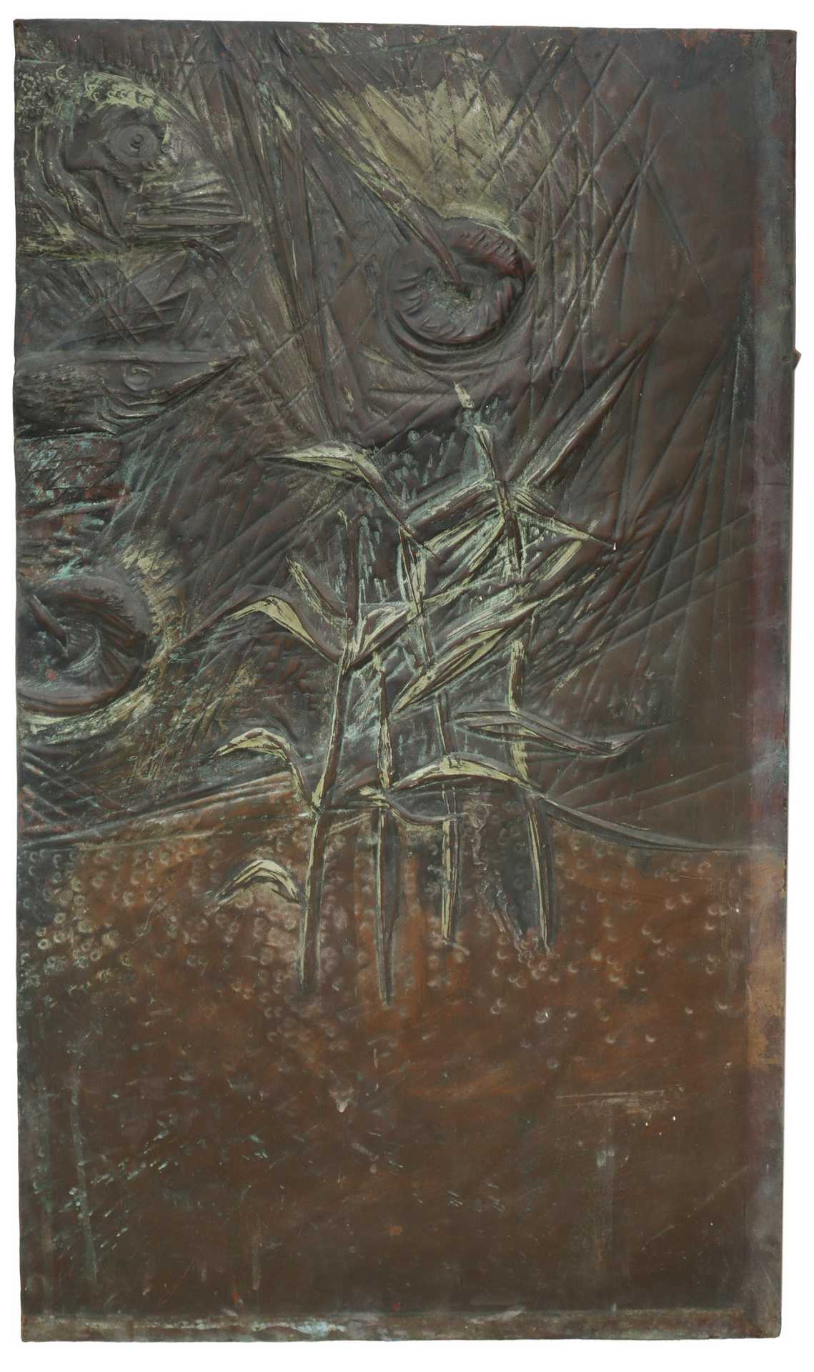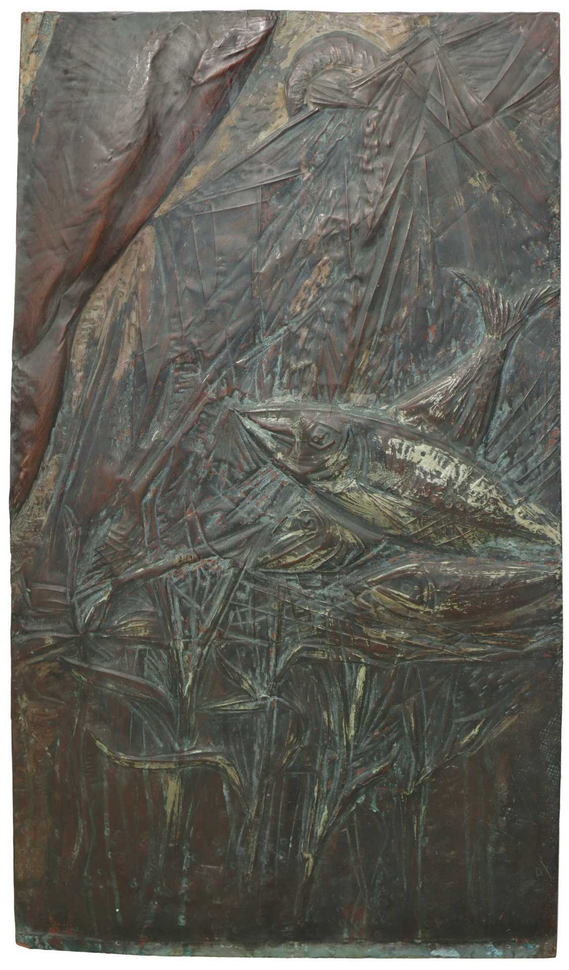 Sebastiano Milluzzo (Catania 1915-Catania 2011) - Grande pannello in lamina di ottone raffigurante Pescatore ad Acitrezza