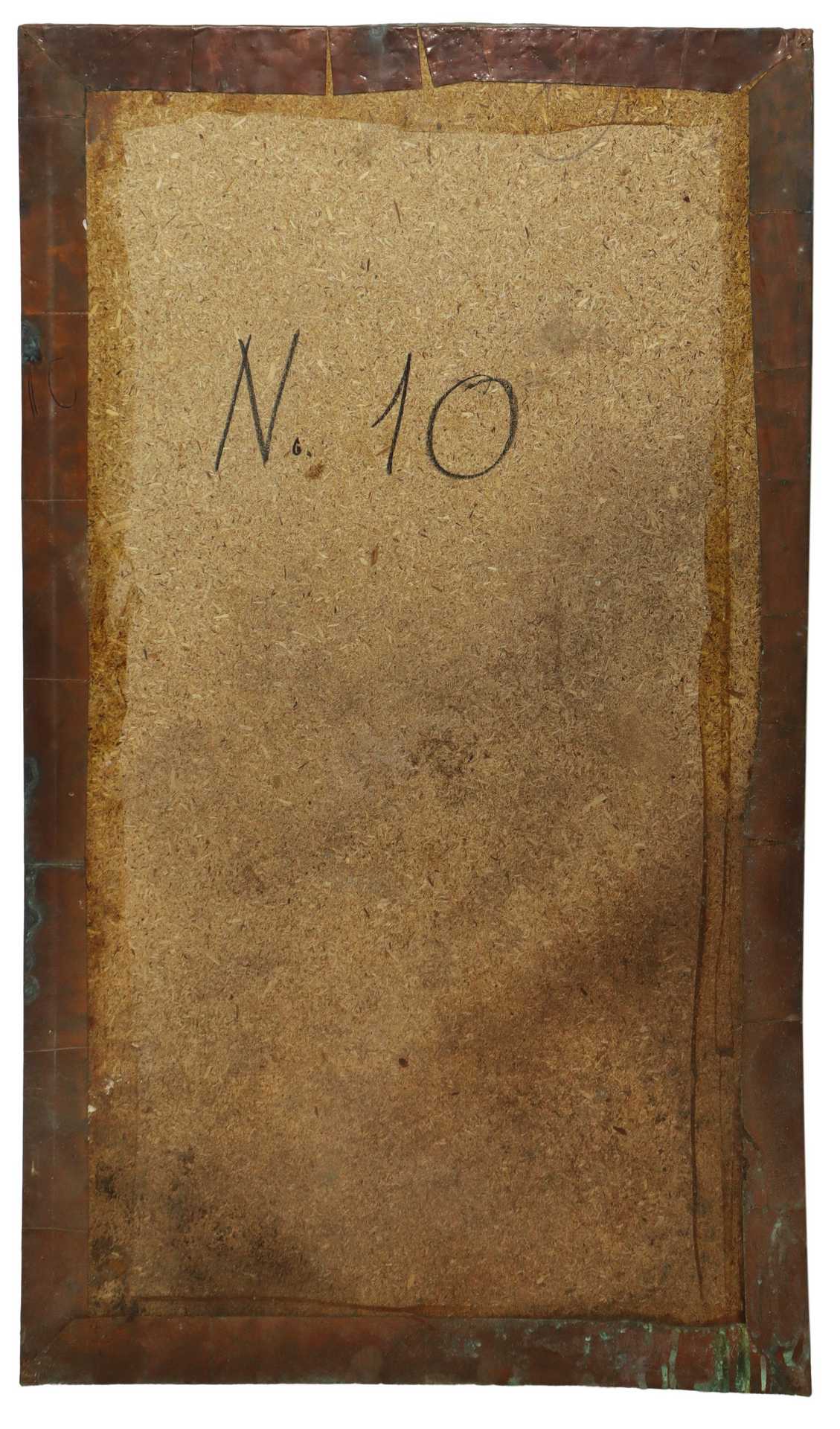 Sebastiano Milluzzo (Catania 1915-Catania 2011) - Grande pannello in lamina di ottone raffigurante Pescatore ad Acitrezza H cm 90x50 (singolo pannello) - H cm 270x200 Formato da 12 pezzi. Firmato a destra. Formato da 12 pezzi. Firmato a destra.