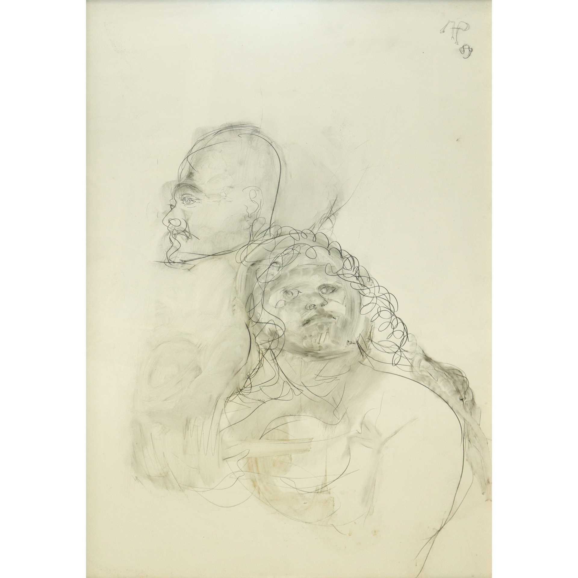 Perez Augusto (Messina 1929-Napoli 2000) - Senza titolo, 1991 H cm 68x40 - in cornice H cm 68x48 China acquarellata su cartone Firmato sul fronte in alto a destra. Presenta al retro altro disegno dell'artista. Opera pubblicata nel volume Disegni e incisioni del Novecento, edizione La Vite, 1993, p. 152. Fotocopia della pubblicazione a corredo dell'opera.