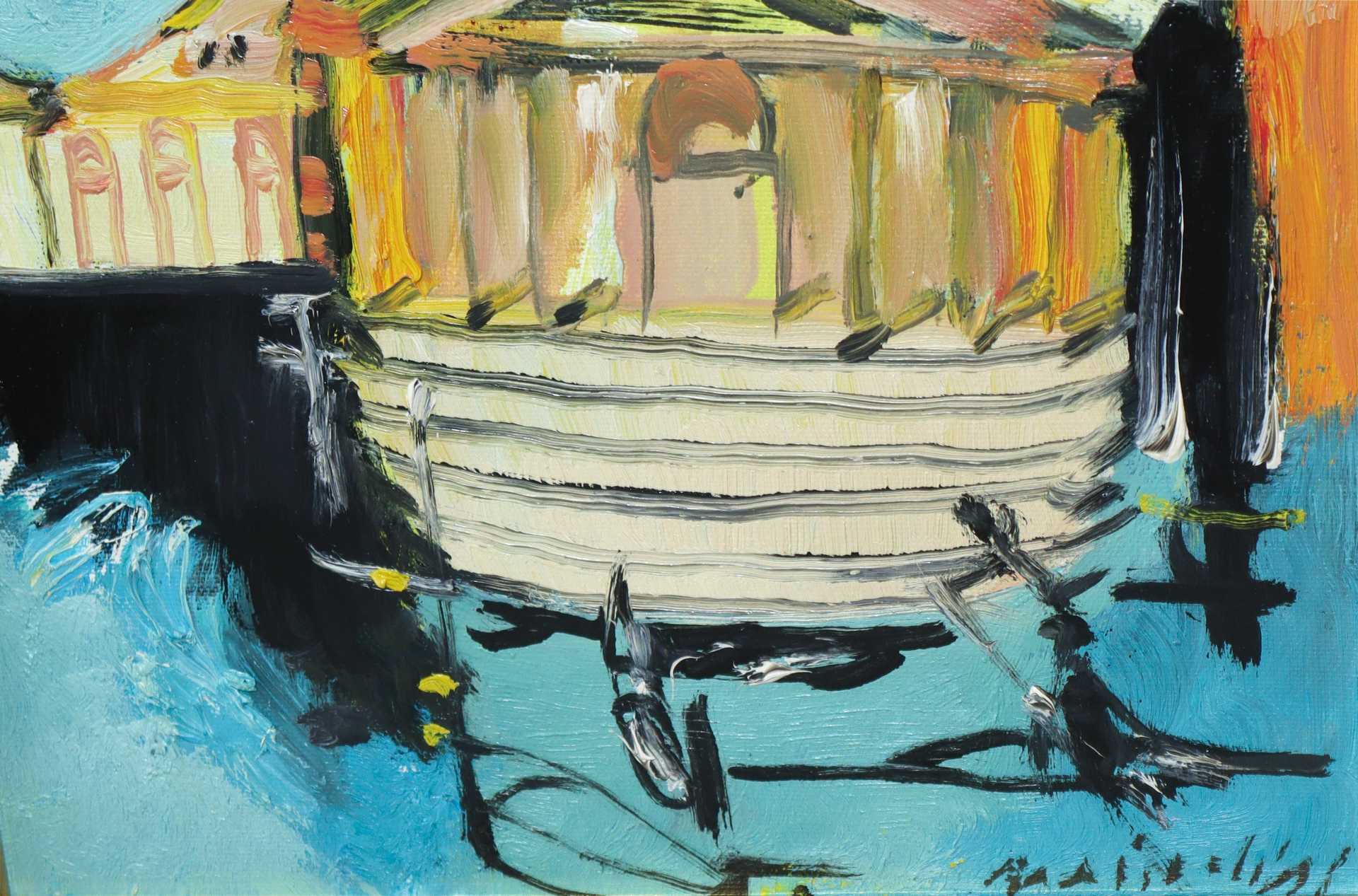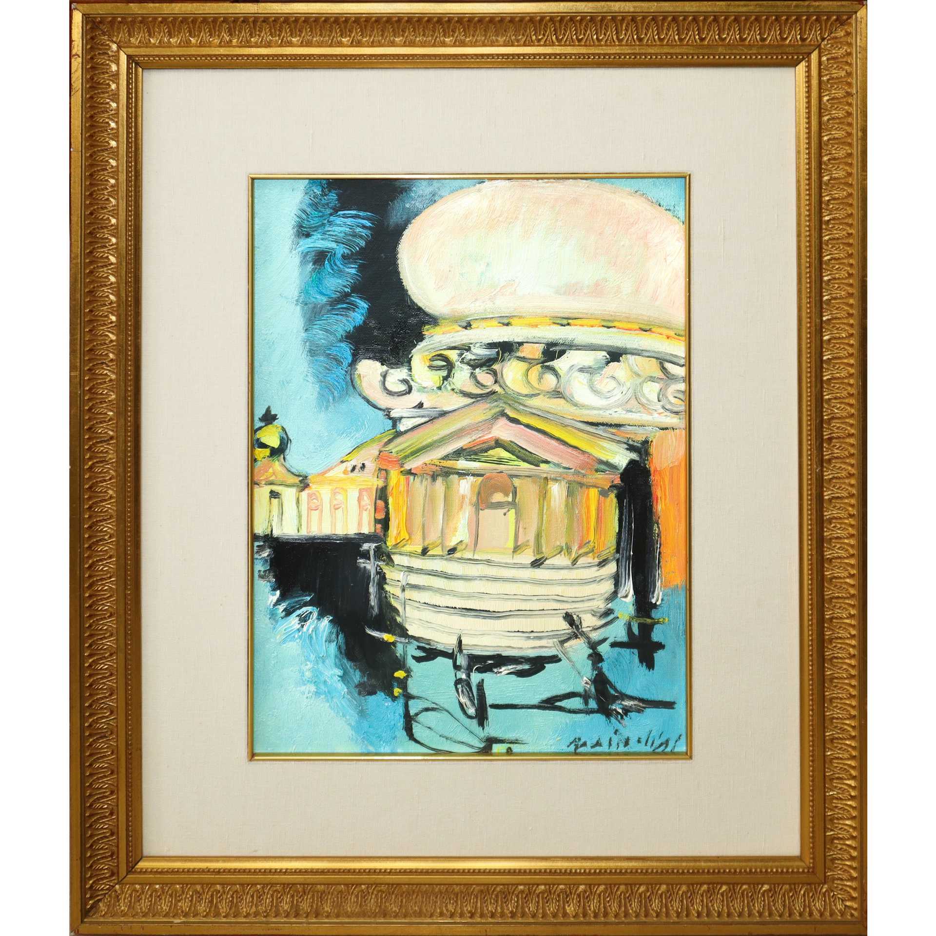 Remo Brindisi (Roma 1918-Lido di Spina 1996) - Venezia H cm 40x30 - in cornice H cm 61x51 Olio su tela Firmato al fronte in basso a destra. Al retro firmato