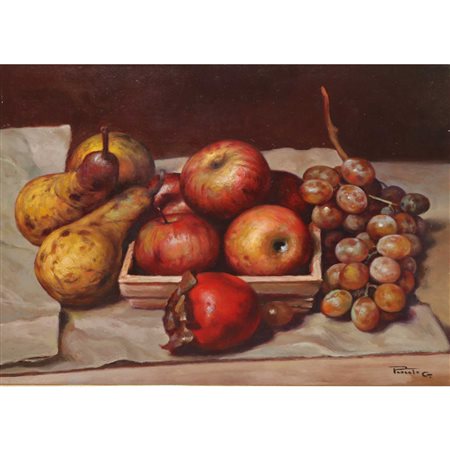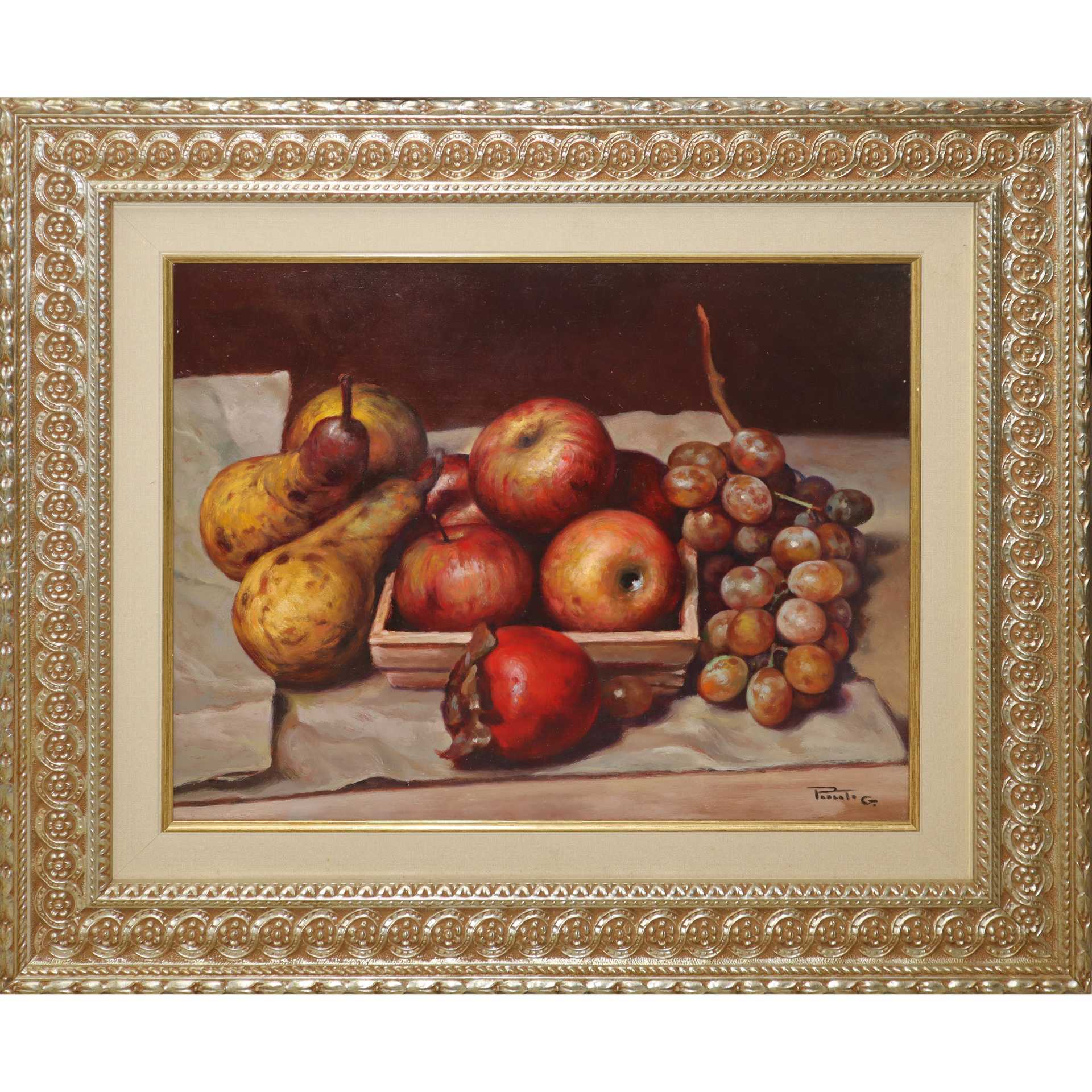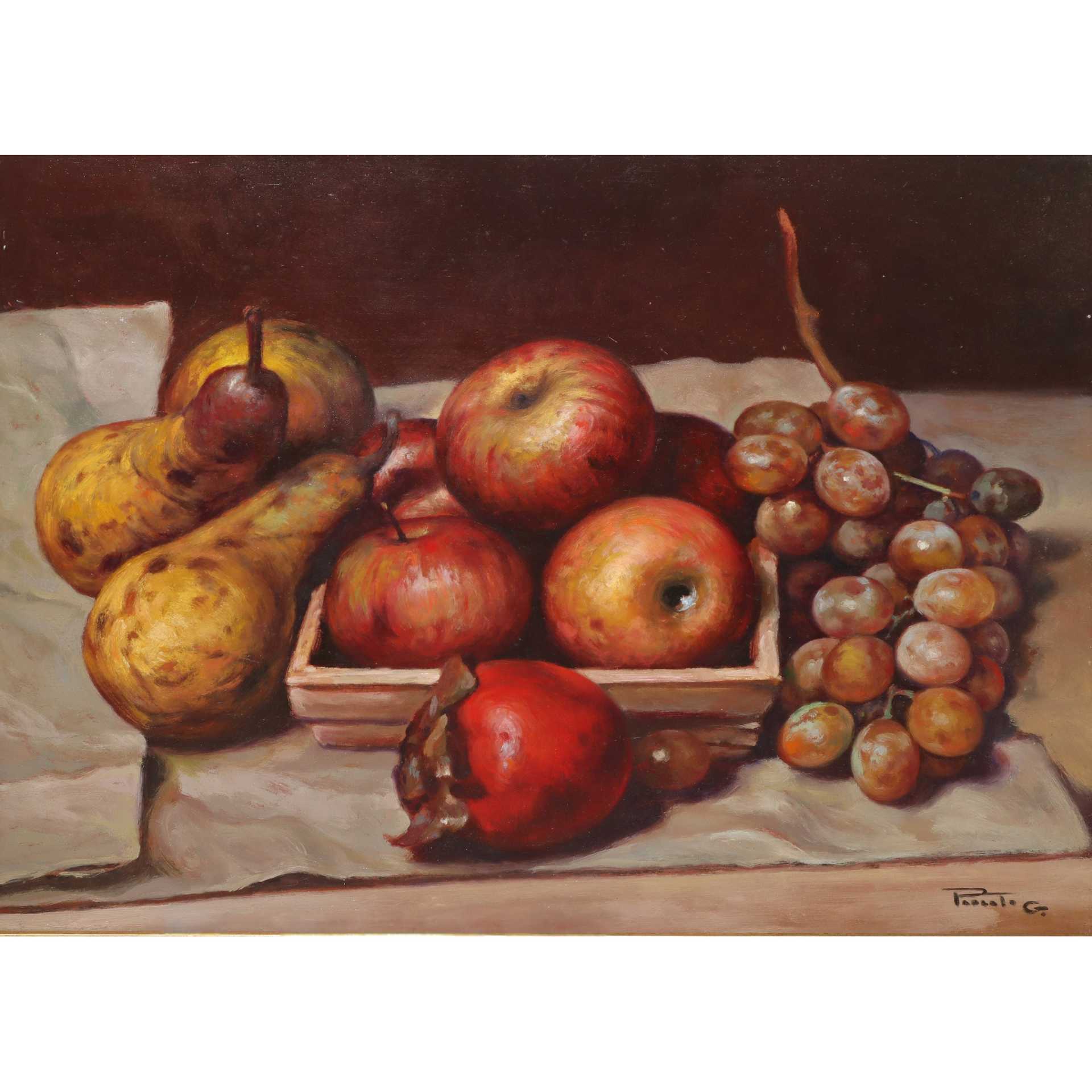Giovanni Parlato (Vico Equense 1957) - Frutti cm 45 x 50, in cornice 60 x 70 Olio su masonite Firmato al fronte in basso a destra.