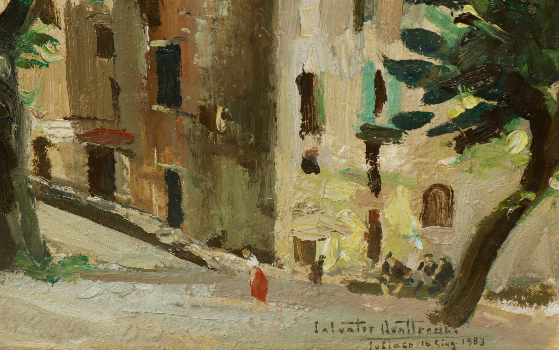 Salvatore Quattrocchi - Scorcio di case con alberi, 1983
