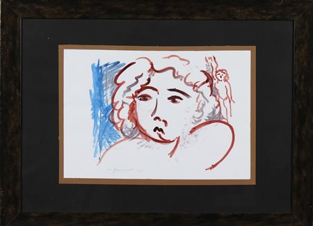 GERMANA' MIMMO (1944 - 1992) Alba. 1990. Tecnica mista su carta. Cm 50,00 x 35,00. Firma e anno in basso a pennarello. Certificato di autenticità a cura della Galleria D'arte L'Acquario, Giulianova, su fotografia. Cornice presente