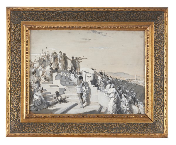 Ludovico Pogliaghi "Flaminio proclama la libertà della Grecia" olio su carta ap