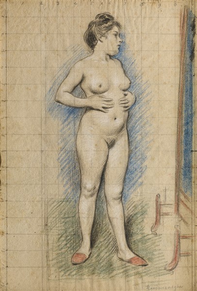 Federico Zandomeneghi "Studio per nudo di donna" tecnica mista su carta (cm 47x