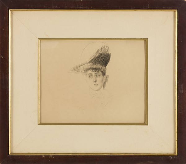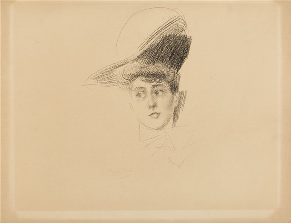 Giovanni Boldini "Donna con cappello" carboncino su carta (cm 23x31) reca timbr