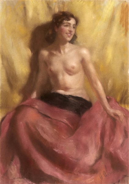 Ambrogio A. Alciati "Ritratto femminile" pastelli colorati su carta (cm 63x42)
