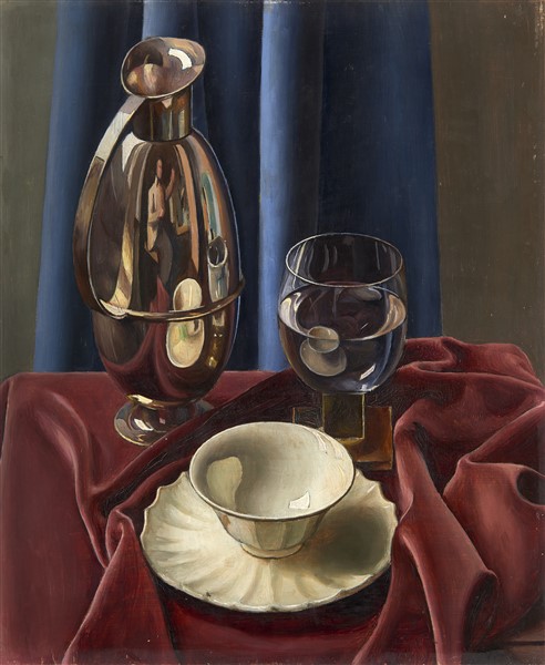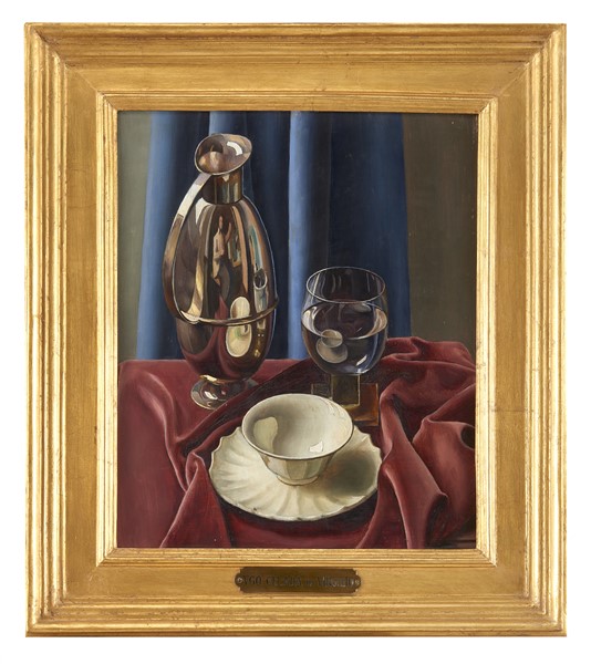 Ugo Celada da Virgilio (Attribuito) "Composizione con versatoio, bicchiere e ta