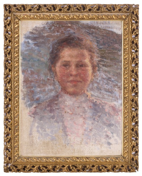 Giuseppe Cominetti "Ragazza" olio su tela (cm 50x40) al retro: cartilgio in cor