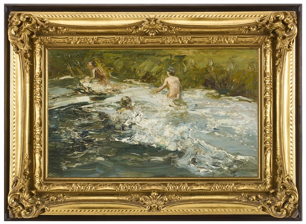 Beppe Ciardi "Bagno nel fiume" Quinto, 1899 olio su tavola (cm 35x56) firmato in
