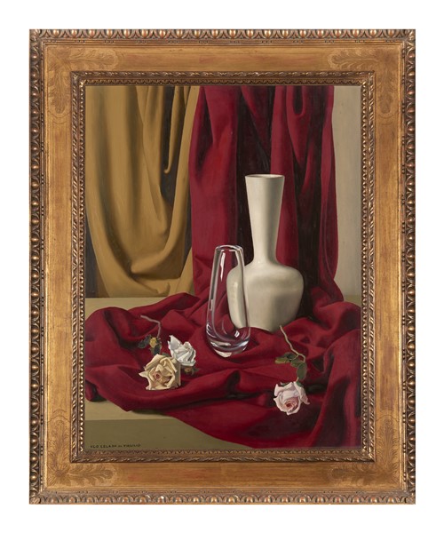 Lot 93 | Ugo Celada da Virgilio "Composizione con vaso, vetro e rose" olio su masonite (