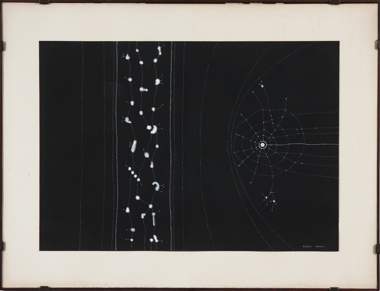 CIONI CARLO (n. 1930) Senza titolo. Tecnica mista su carta. Cm 50,00 x 35,00. Al retro timbro della Galleria Arte Centro, per esposizione del 10 ottobre 1968 con numero di archivio. Cornice presente