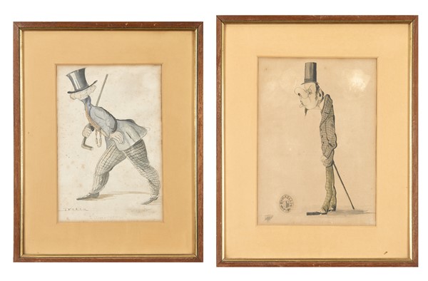 Angiolo Tricca Lotto composto da due caricature tecniche miste su carta (cm 24,