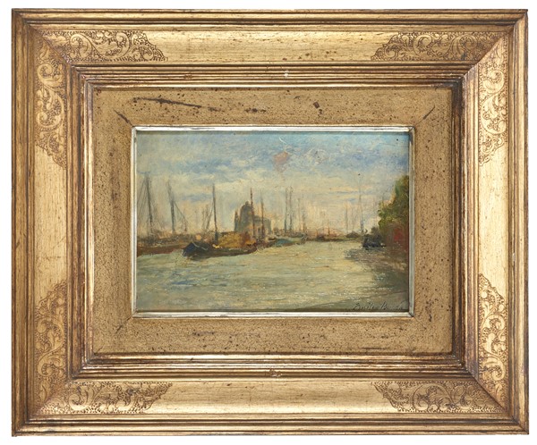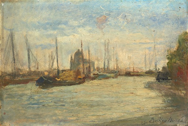 Emilio Borsa "Canale della Giudecca - Venezia" olio su tavoletta (cm 14,5x22) f