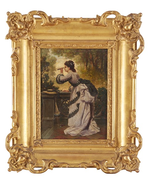 Giovanni Battista Crevatin "La curiosa" olio su tavola (cm 32x23,5) firmato in