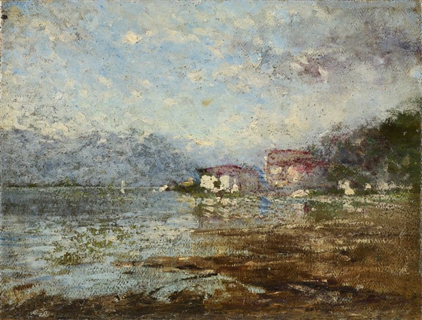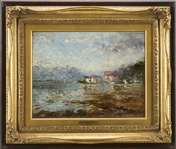Lot 163 | Eugenio Gignous "Scorcio del Lago Maggiore" olio su tela (cm 29x37) firmato in