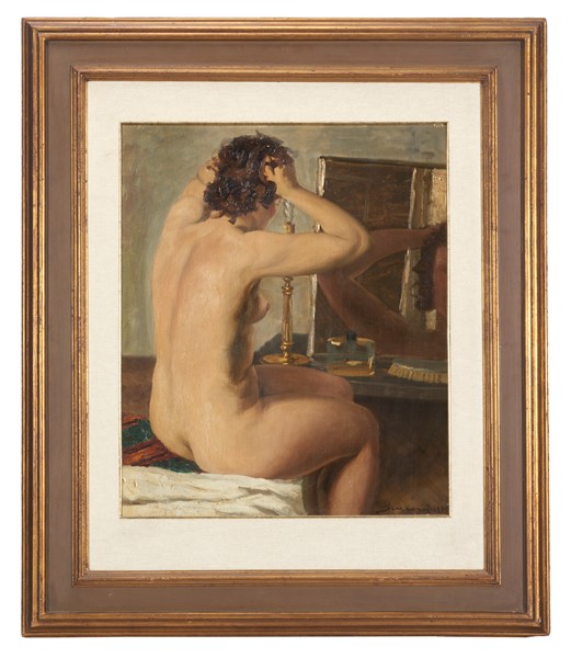 Annibale Scaroni "Nudo allo specchio" 1939 olio su tela (cm 55x65) firmato e dat