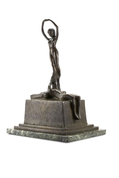 Ignoto di inizio secolo XX "La danza" scultura in bronzo su base in marmo (cm