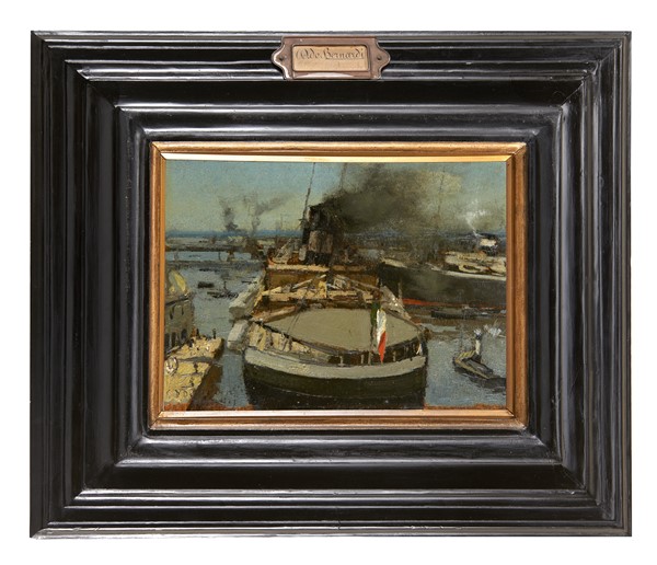 Domenico De Bernardi "La stazione marittima, Genova" 1929 olio su cartone (cm 21