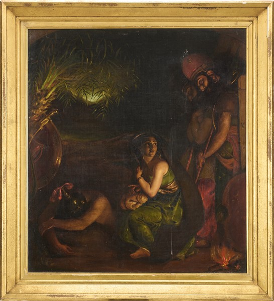 Maestro francese del secolo XIX "Scena orientalista" olio su tela (cm 77x69)