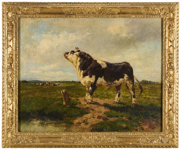 Constant Troyon "Toro al pascolo" olio su tela (cm 65x81) firmato in basso a de