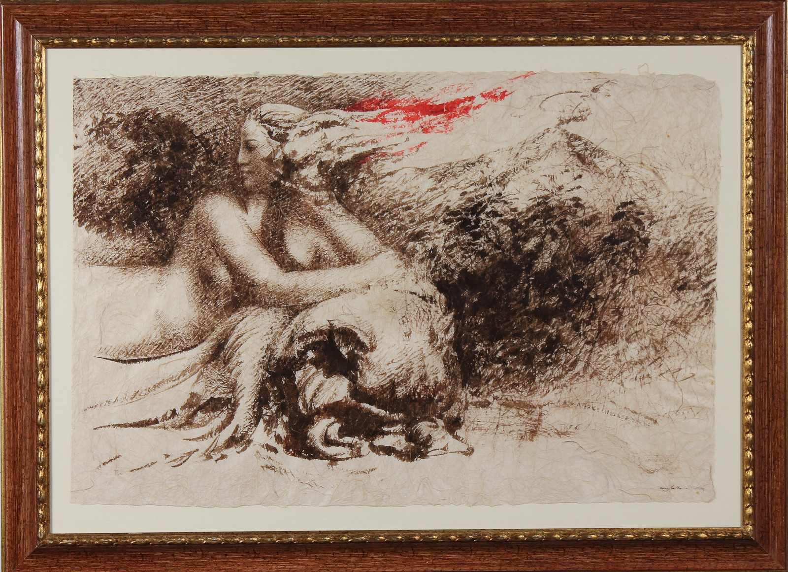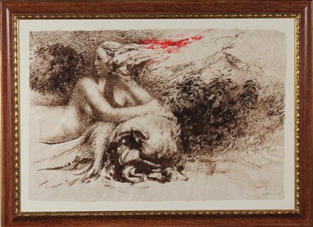 GALLIANI OMAR (n. 1954) Senza Titolo. 1984. Disegno su carta Giappone. Cm 91,00 x 63,00. Firma in basso a destra. Al retro etichetta descrittiva Studio G7, Bologna. Autentica dell'artista su fotografia a cura dello Studio G7, Bologna. Cornice presente