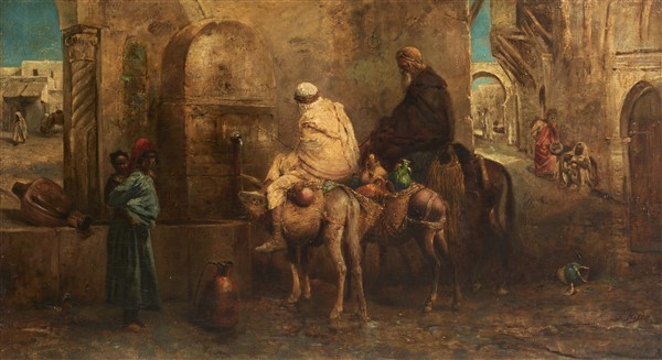 Lot 237 | Cesare Biseo "Alla fontana" olio su tela (cm 58x105) firmato in basso a destra