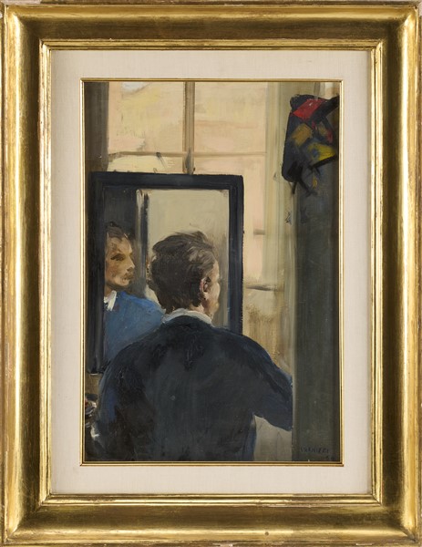Renato Vernizzi "Autoritratto allo specchio" 1958 olio su tela (cm 47x32) firmat