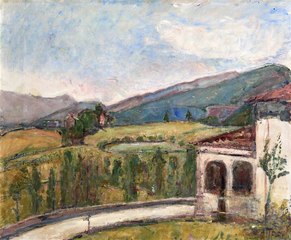 Arturo Tosi "Paesaggio con Santuario di Sommaprada" olio su tela (cm 50x60) fir