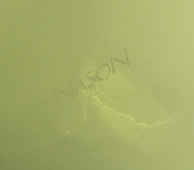 Vaso in vetro soffiato trasparente verde cm 31x19 ø Etichetta adesiva "Nason Glass Collection". Firma sotto la base "Nason"