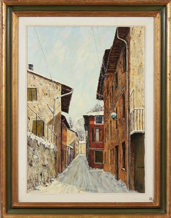 BASSETTO GUIDO (n. 1937) Vicolo di paese. Olio su tela . Cm 70,00 x 50,00. Firmato in basso a destra. Cornice presente