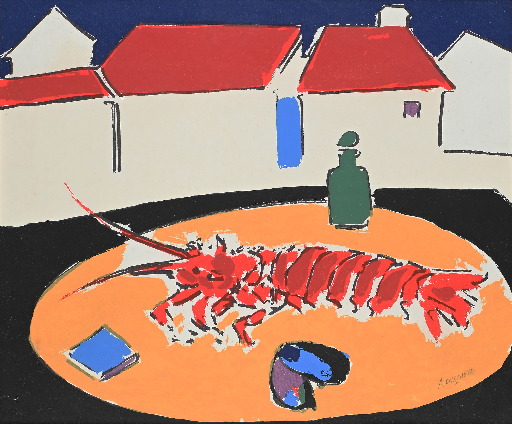 Sante Monachesi (Macerata 1910-Roma 1991) Aragosta Serigrafia cm 59x70 - in...