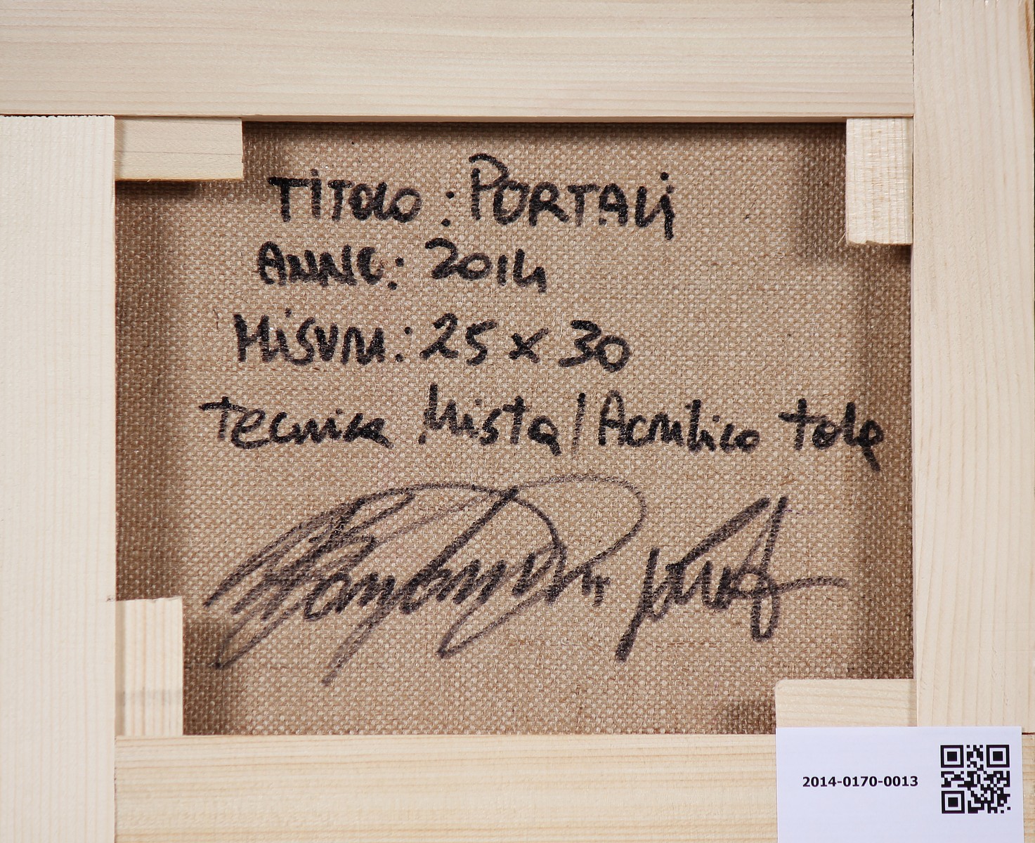 BONFANTI LUCA (n. 1973) Portali. 2014. Tecnica mista su tela. Cm 30,00 x 25,00. Titolo anno e firma al retro.
