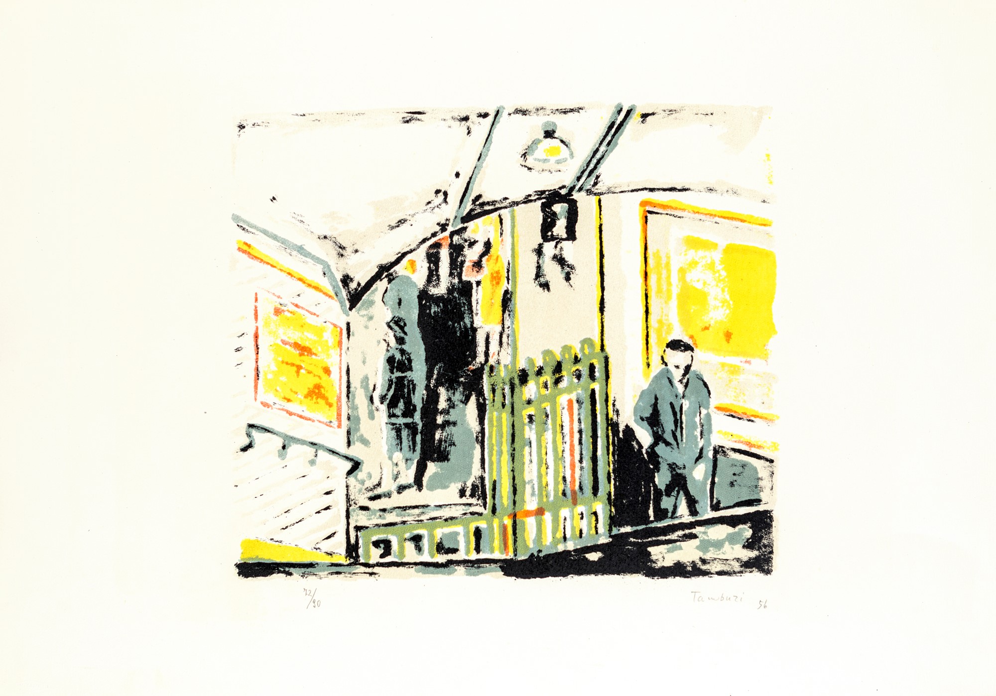c) Senza titolo, 1956, Litografia, cm 48x66. Firma data e numerazione "Tamburi 72/90".