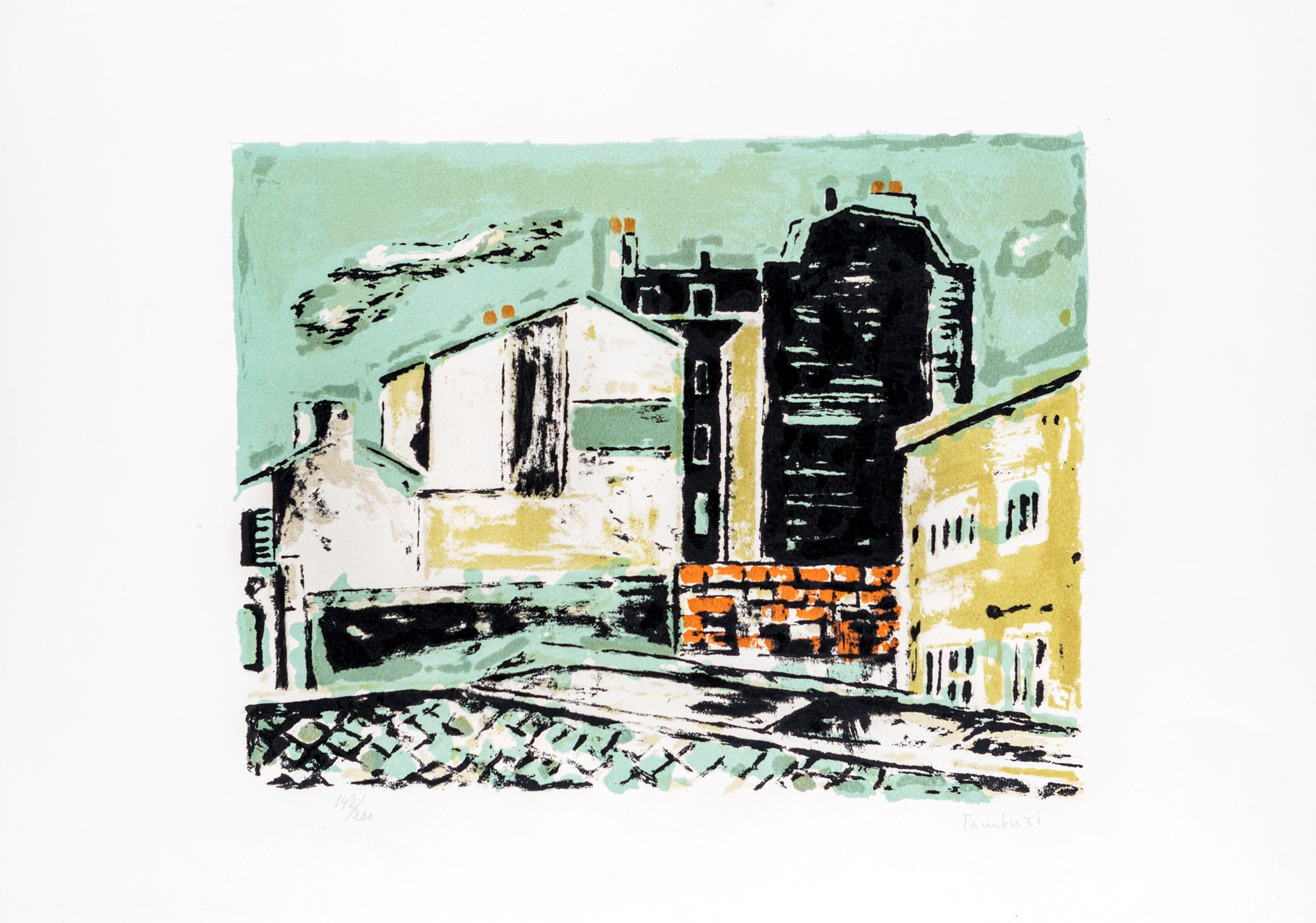a) Parigi, Litografia, cm 49x67. Firma e numerazione "Tamburi 142/200".